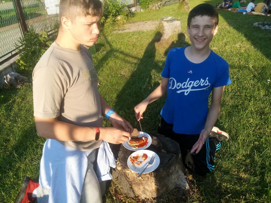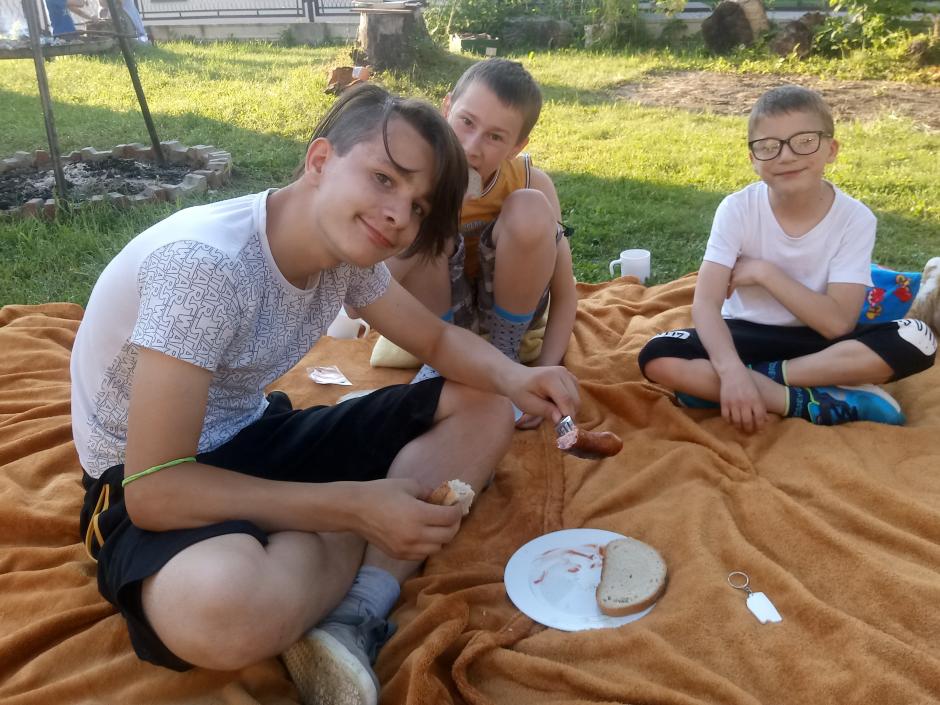 Po pełnych wrażeń aktywnych zmaganiach na mecie oczekiwał zasłużony posiłek.