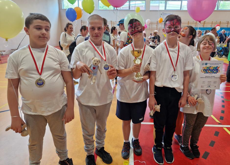 W dniu 7 czerwca sześcioro uczniów reprezentowało naszą szkołę podczas XXII Powiatowych Igrzysk Osób Niepełnosprawnych. Impreza odbyła się tym razem w Imielinie. Uczestnicy przeszli w uroczystym pochodzie drużyn a następnie wzięli udział w oficjalnym otwarciu zawodów i zapaleniu znicza. Każdy zawodnik mógł wystartować w dowolnej liczbie, różnorodnych konkurencji biegowych, celnościowych, skocznych i koordynacyjnych. Celem zawodów były zmagania sportowe ale również wspólna zabawa i radość płynąca z aktywności fizycznej. Uczestnicy skorzystali też z oferty stanowisk do zabaw z bańkami, balonami czy malowaniem twarzy. Każdy został uhonorowany medalem a drużyna zdobyła piękny puchar.
