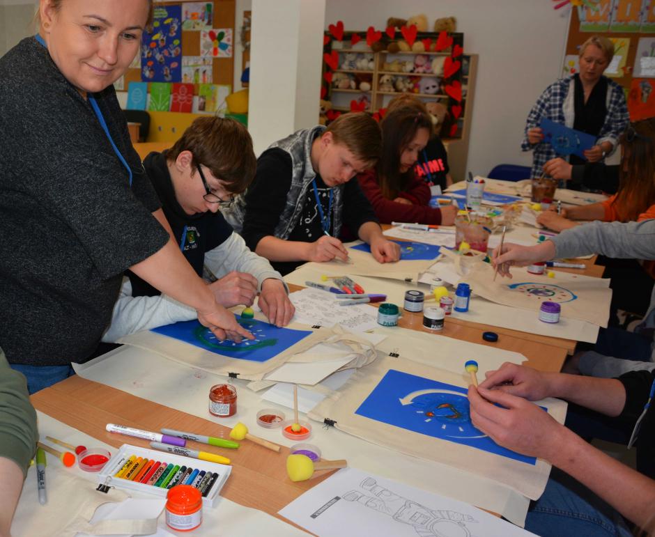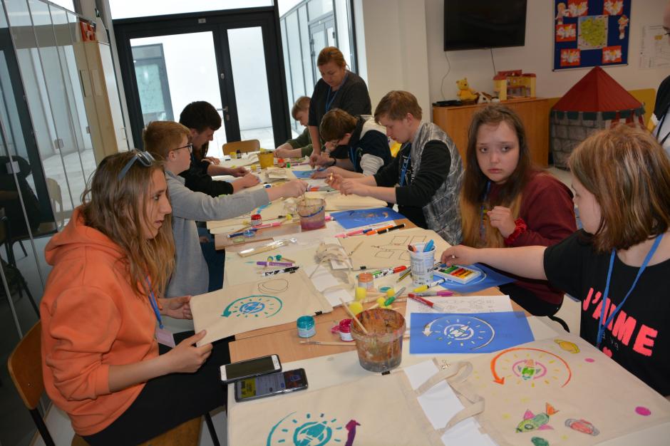 W celu ułatwienia kontaktów wszyscy uczestnicy projektu otrzymali identyfikatory z imieniem i logo projektu. Po powitaniu odbyły się wspólne zajęcia tematyczne, związane z tytułem projektu, w trzech grupach. Grupa teatralna uczestniczyła w warsztatach przygotowujących do przedstawienia pt. „Poszukiwanie kapsuły czasu”. Uczestnicy zajęć muzycznych tworzyli oprawę dźwiękową do przedstawienia. Na plastycznych pozostali uczestnicy ozdabiali płócienne torby logo projektu oraz własnymi pomysłami związanymi z przewodnim hasłem projektu.