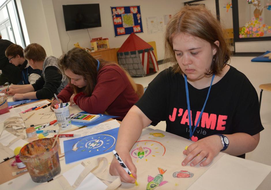 Zwrócili też uwagę na przygotowane dekoracje związane z projektem: proporce, flagi i scenografię w holu szkoły przedstawiającą lądowanie rakiety w kosmosie.