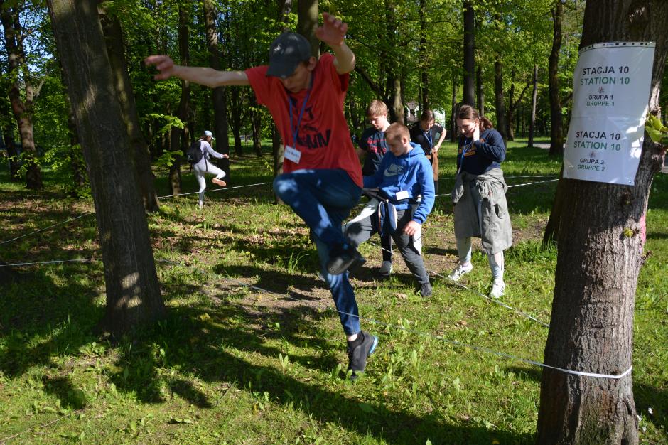 Po obiedzie goście z Niemiec i uczniowie z Polski uczestniczyli w zwiedzaniu tuneli zamku Piastowskiego w Oświęcimiu. Podczas „gry ulicznej” na plantach nad Sołą współpracowali przy wykonywaniu zadań plastycznych, zręcznościowych i ruchowych.