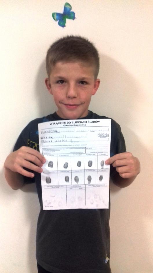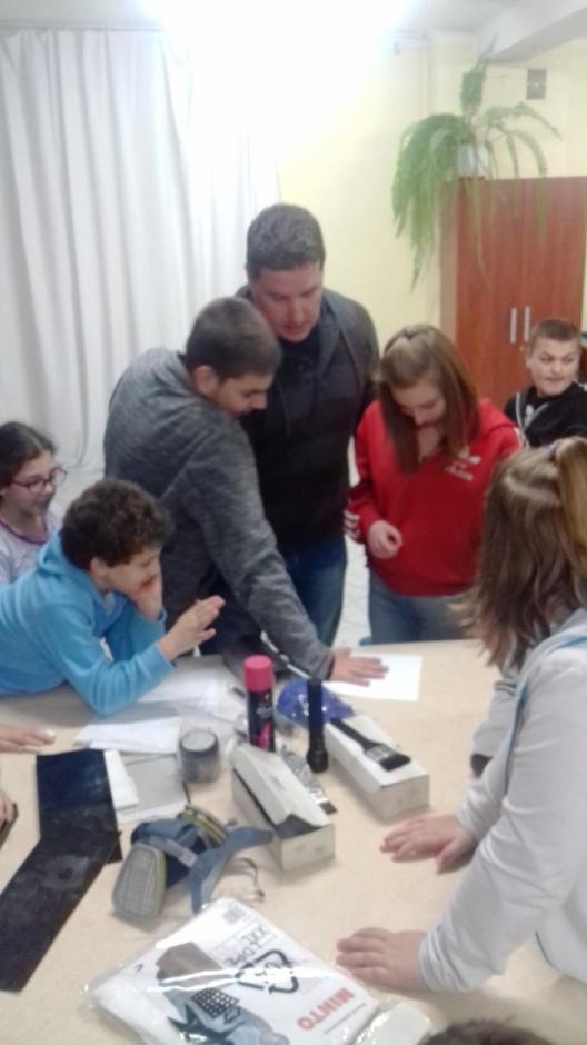 8 listopada na zaproszenie p. Pedagog S. Magiery, gościliśmy technika kryminalistyki mł. asp. Janusza Kajora z KPP w Oświęcimiu.. Pan policjant opowiedział i pokazał nam na czym polega jego praca. Wielką atrakcją była prezentacja badań daktyloskopijnych. Wizyta była pouczająca i ciekawa dla naszych wychowanków.