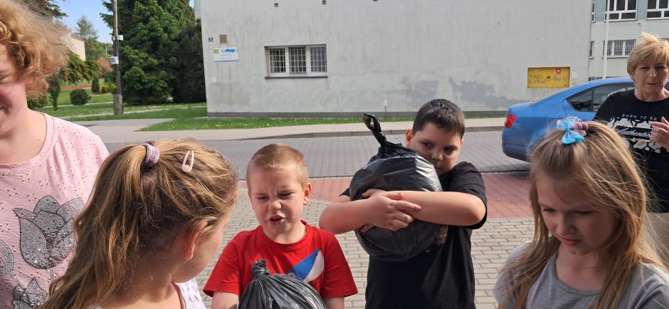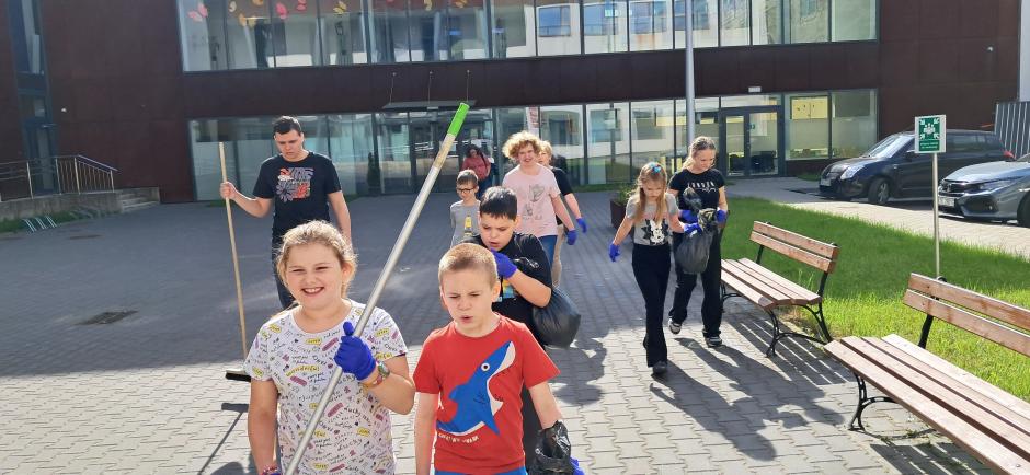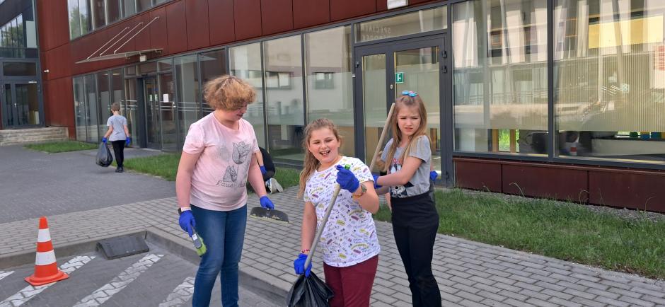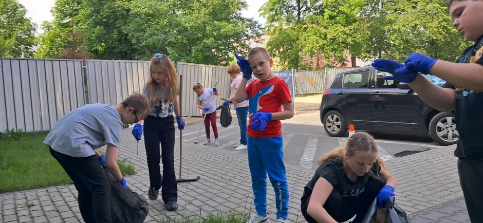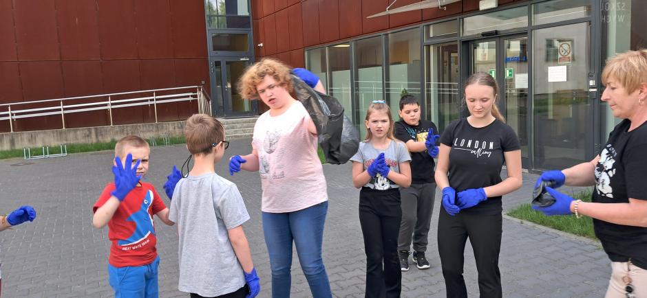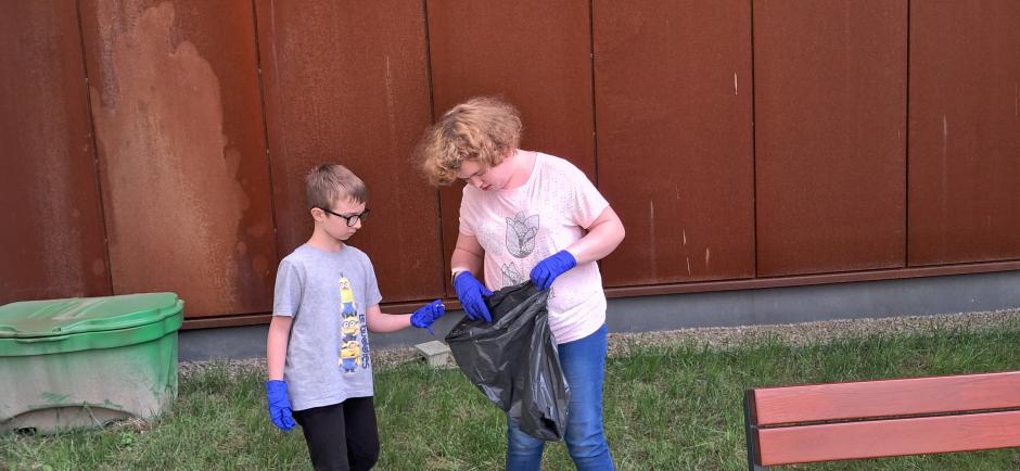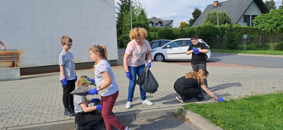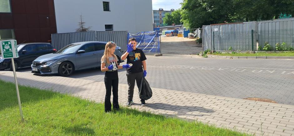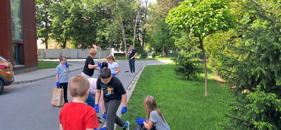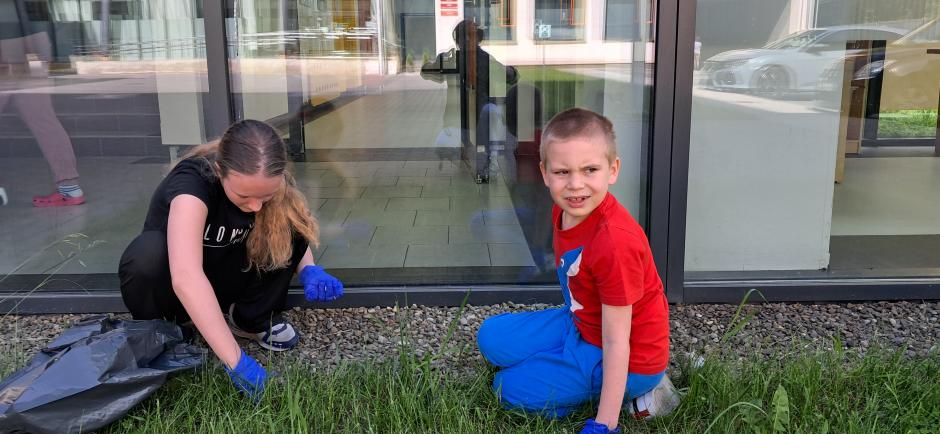 Sprzątanie śmieci wokół budynku Grupy III i V