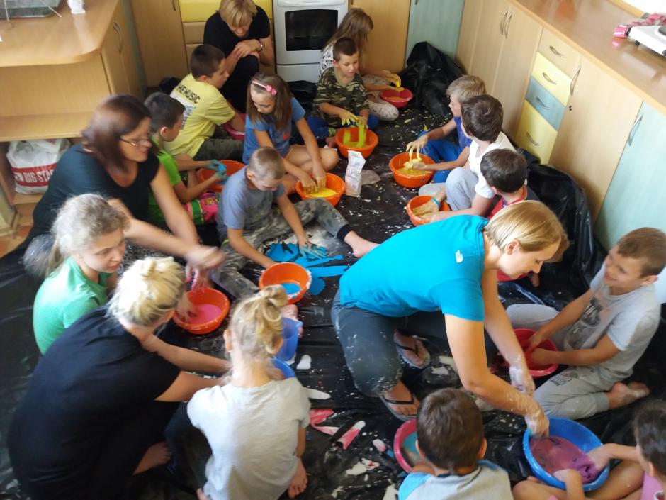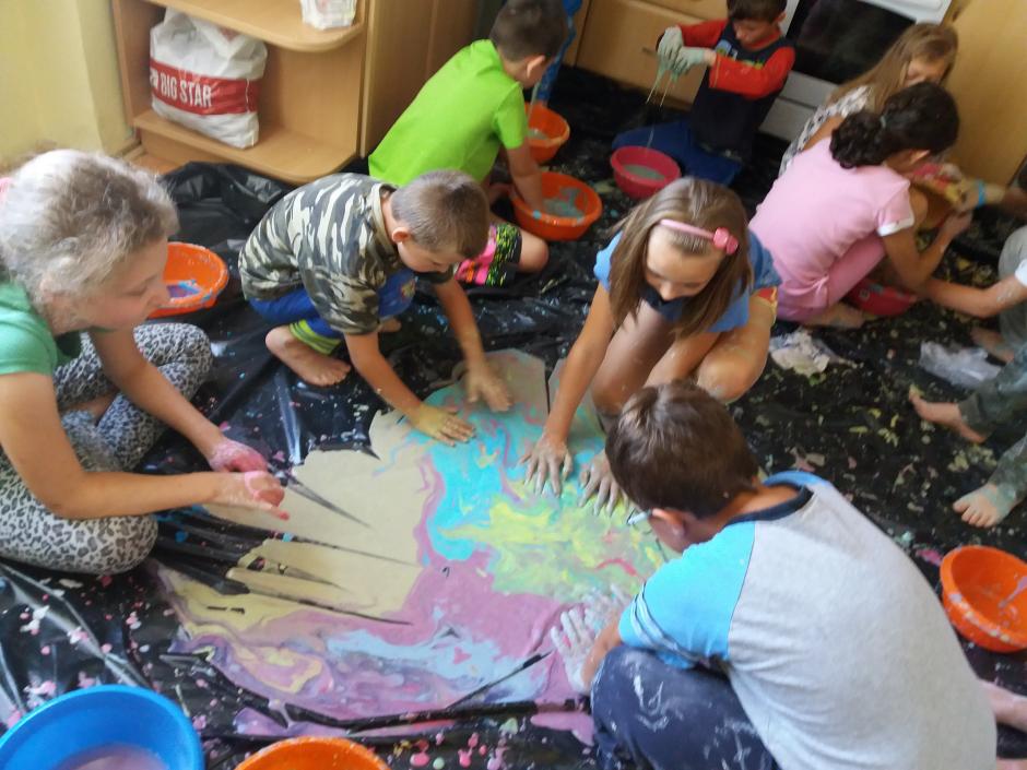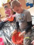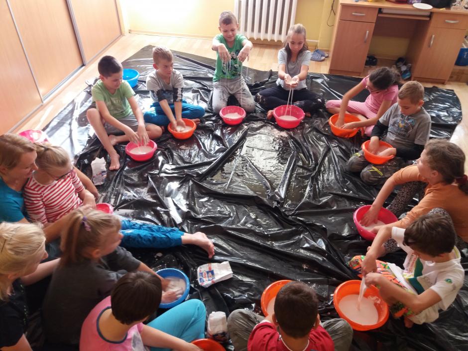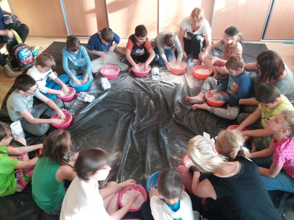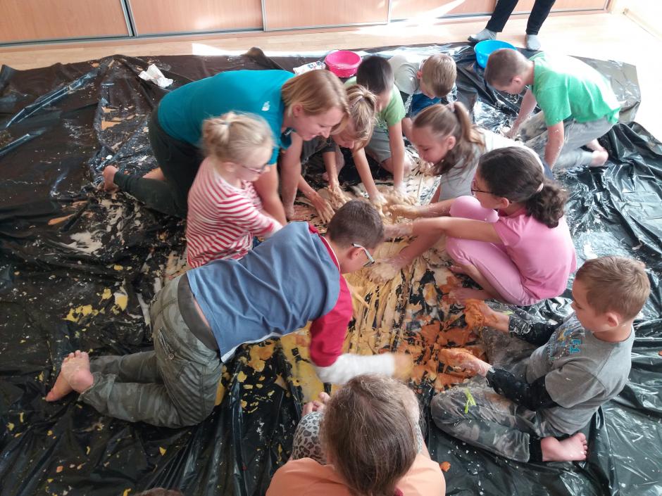 Materiały sensoryczne na zajęciach opierają się wyłącznie na wykorzystaniu w 100% bezpiecznych produktów spożywczych. Przygotowujemy wolną przestrzeń. Pracujemy w ubraniu przeznaczonym do ubrudzenia, nie zakłócając w ten sposób naturalnego procesu spontanicznej aktywności twórczej ucznia. Zadajemy pytania zamiast wydawać polecenia. Dostrzegamy sytuacje trudne i wspieramy w ich doświadczaniu. Dzieci są kreatywne, twórcze, lepią, sypią, gniotą, malują, formują kształty, wielozmysłowo poznają i przetwarzają świat wychodząc poza schemat, a przy tym znakomicie rozwijają swoje umiejętności komunikacyjne.