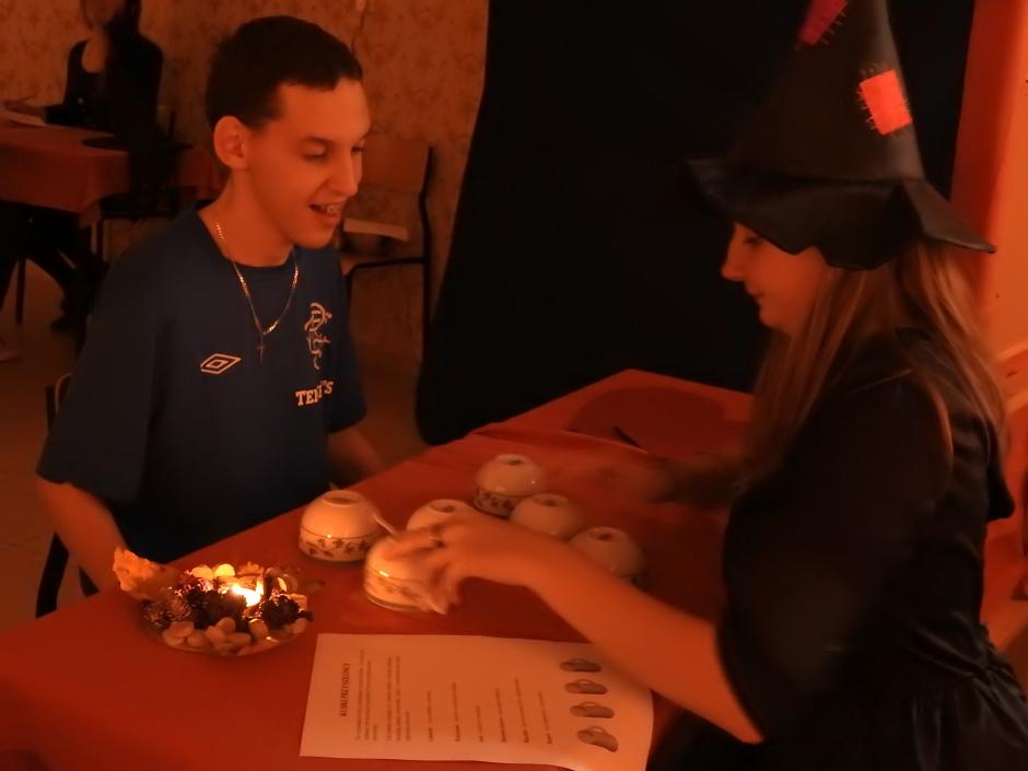 Dzień później, czyli 01.12 odbyły się Andrzejki w naszej szkole w Oświęcimiu. Już trzeci rok z rzędu w pokoju wróżb zasiadły wróżki: Gabrysia, Dominika, Madzia, Ula oraz Weronika, Maja i Natalia, które specjalnie szkolone na Zlocie Czarownic wróżyły nam wszystko co najlepsze. Z kolei Pan Janusz cierpliwie tłumaczył znaczenie woskowych odlewów. Wosku lało się dużo, bo Pan Adrian zadbał o sporą jego ilość! Szkolny sklepik również stanął na wysokości zadania. Monika, Nina i Sylwia uprzejmie częstowały uczniów ciastkami, herbatnikami z kremem czekoladowym oraz wodą. DJ Arek i Szymon i tym razem nie zawiedli w doborze ciekawego muzycznego repertuaru. Tańczyli przecież nie tylko uczniowie 🙂