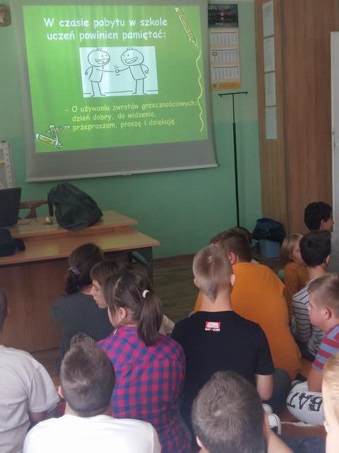 Dnia 30 września 2016 r. odbył się w szkole apel porządkowy, w którym wzięli udział wszyscy uczniowie Szkoły Podstawowej. Opiekunowie Samorządu Uczniowskiego przedstawili prezentacje multimedialną, która przypomniała uczniom zasady bezpieczeństwa w szkole i poza nią. Podczas apelu omówione zostały również zasady właściwego zachowania podczas lekcji, przerw śródlekcyjnych oraz zajęć świetlicowych.