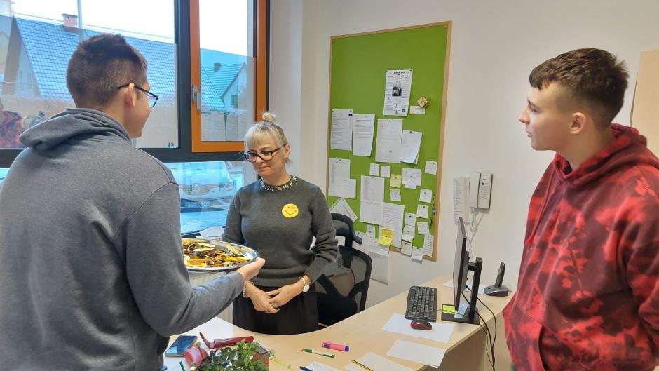 W naszej szkole zorganizowaliśmy bramę uśmiechu, w której wszyscy mogli zrobić sobie zdjęcia. Przygotowaliśmy również drobne upominki dla młodszych koleżanek i kolegów ze szkoły podstawowej, które osobiście im wręczaliśmy. My również otrzymaliśmy niespodzianki – piękne zakładki do książek z uroczą grafiką i miłym słowem. W tym dniu dominował kolor żółty, który oznacza dobroć, życzliwość, radość i uśmiech. Przychylne nastawienie do świata, uśmiech, miłe słowo czy uprzejmy gest potrafią wprowadzić w dobry nastrój oraz sprawić, że ludziom wokół lepiej się żyje.