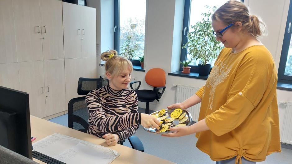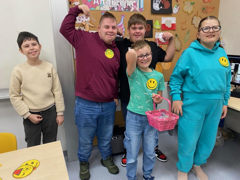 W naszej szkole zorganizowaliśmy bramę uśmiechu, w której wszyscy mogli zrobić sobie zdjęcia. Przygotowaliśmy również drobne upominki dla młodszych koleżanek i kolegów ze szkoły podstawowej, które osobiście im wręczaliśmy. My również otrzymaliśmy niespodzianki – piękne zakładki do książek z uroczą grafiką i miłym słowem. W tym dniu dominował kolor żółty, który oznacza dobroć, życzliwość, radość i uśmiech. Przychylne nastawienie do świata, uśmiech, miłe słowo czy uprzejmy gest potrafią wprowadzić w dobry nastrój oraz sprawić, że ludziom wokół lepiej się żyje.