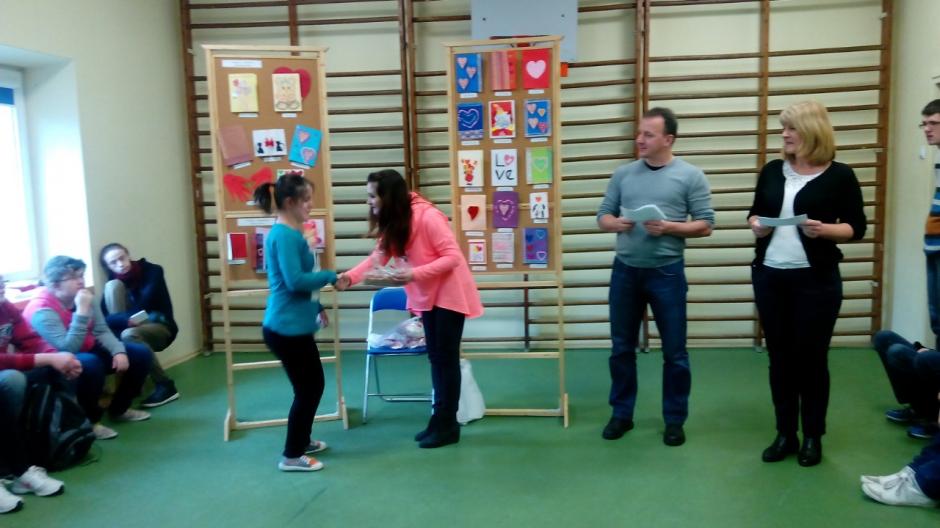 Apel był bardzo radosny i każdy z uczestników konkursu otrzymał upominek. Niemałe emocje towarzyszyły nam również w czasie rozdawania walentynkowej poczty 🙂