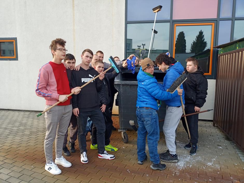 Sprzątanie śmieci wokół budynku Grupy I i II
