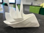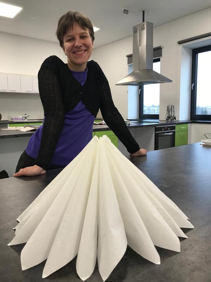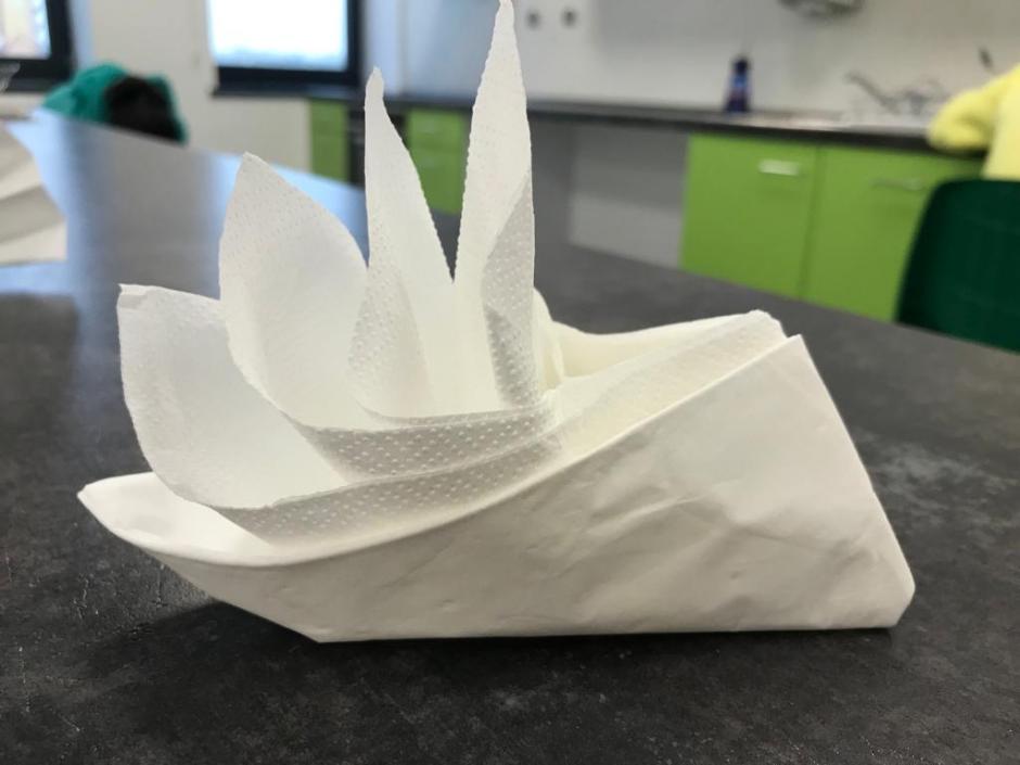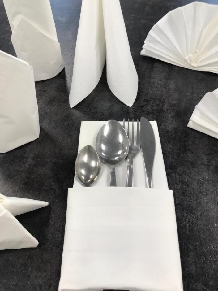 Uczniowie klasy IIIc zdobyli dodatkowe umiejętności przydatne w działalności gastronomicznej. Pod bacznym okiem pani Kasi składali serwety osobistego użytku. Poznali techniki składania korony, dżonka, dwóch rodzajów wierzchołka, czapki biskupa, melona, wachlarza oraz sakiewki na sztućce. Przygotowuje się je zarówno podczas aranżacji stołów okolicznościowych, jak i na co dzień. Mimo małych porażek i niedociągnięć, każdy z dużą starannością wykonywał ćwiczenie i cieszył się efektu finalnego.