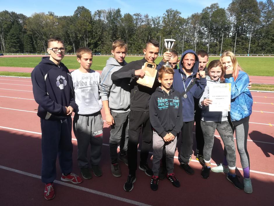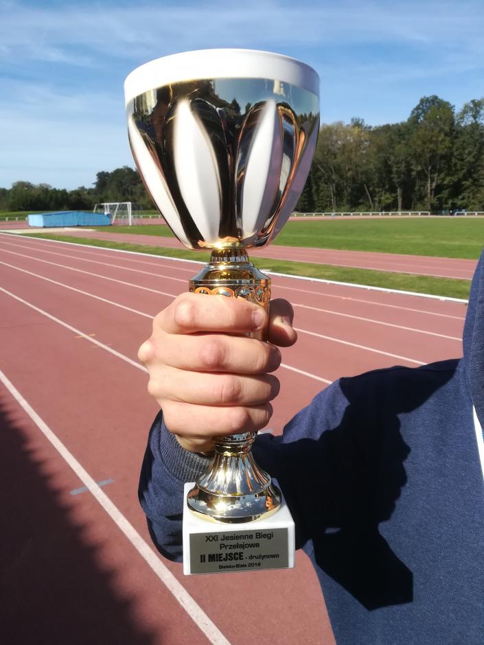 26 września na stadionie ,,Sprint” w Bielsku-Białej były organizowane po raz XXI Jesienne Biegi Przełajowe. Nasi uczniowie stanęli na wysokości zadania uzyskując podczas swoich występów wysokie lokaty. Paweł Tubilewicz w biegu na 1500 m zajął 2 miejsce, Gabriela Góralczyk w biegu na 1000 m zajęła 3 miejsce. Punkty, które zdobyli i dołożyli nasi reprezentanci w swoich biegach, a także wyniki, które osiągnęli uczniowie szkoły podstawowej pozwoliły naszej placówce w gronie 10 szkół zająć w końcowej klasyfikacji 2 miejsce. Gratulujemy i życzymy dalszych sukcesów.