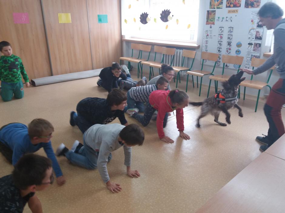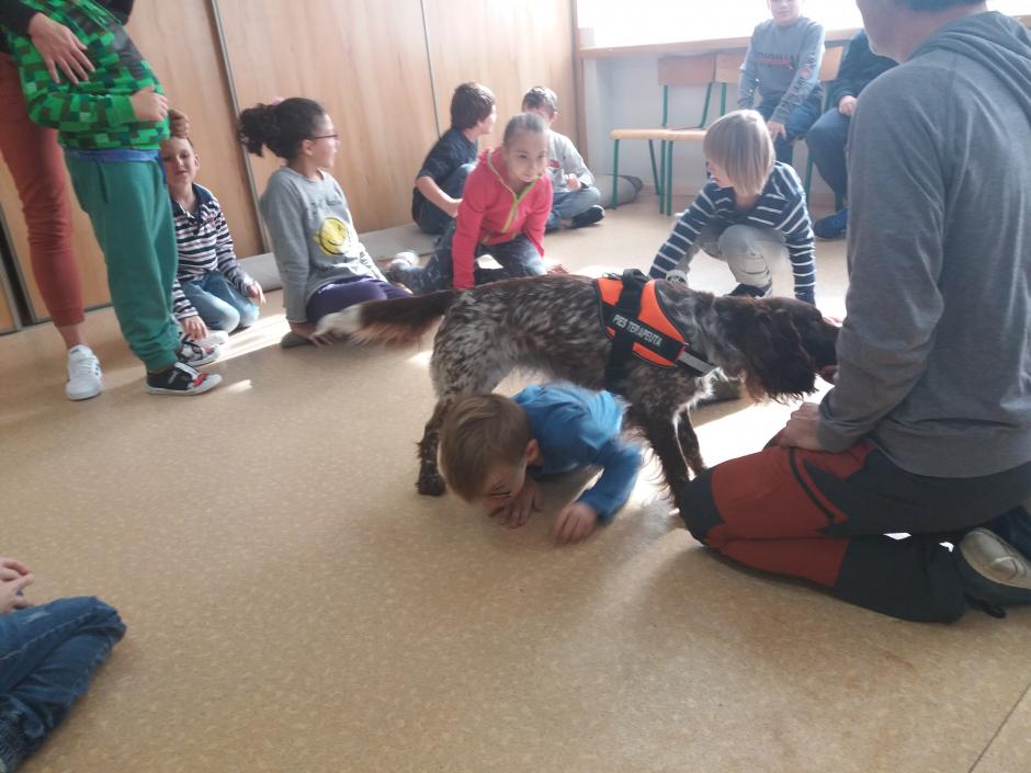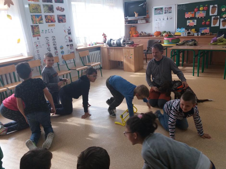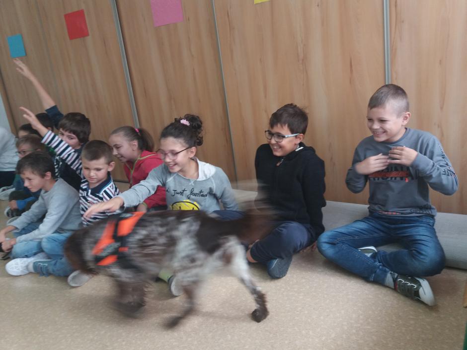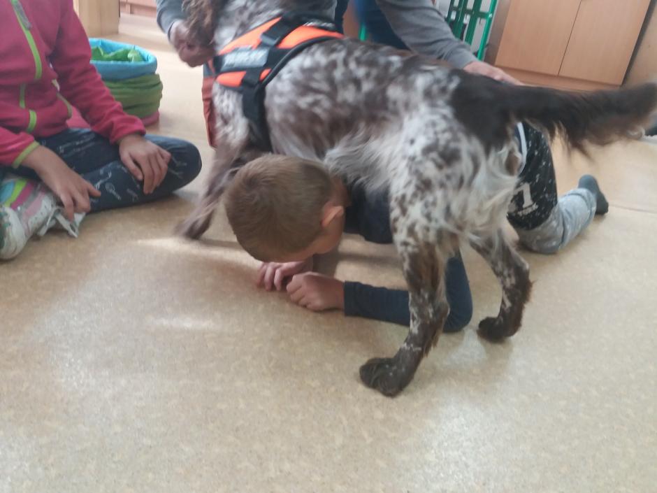 Uczniowie podczas spotkania Amą okazywali uczucia i emocje w bliskim kontakcie z psem. Z podekscytowaniem, wydawali komendy, rozwijając swoje zdolności komunikacyjne, a dodatkowo czuli się ważni i rozpierała ich duma z poczucia sprawczości. Z ogromną radością wykonywali ćwiczenia ruchowe wspólnie z czworonogiem, który w nagrodę dał się przytulać.