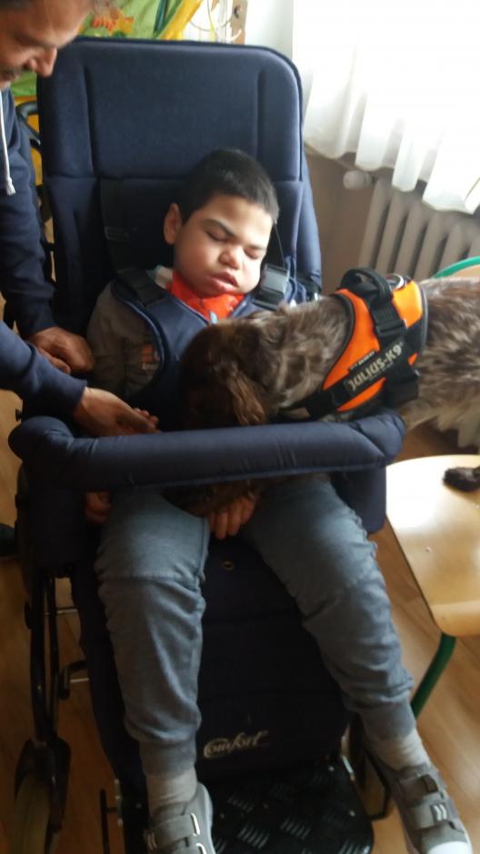 W październiku, po raz kolejny, pies „terapeuta” wraz ze swoim przewodnikiem odwiedził uczestników zajęć rewalidacyjno – wychowawczych.