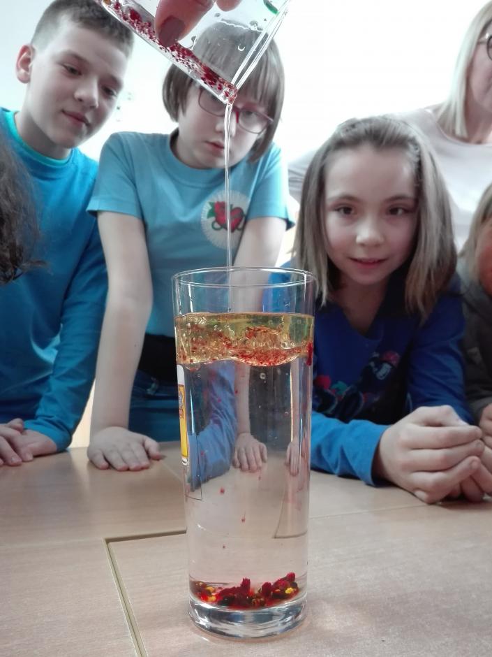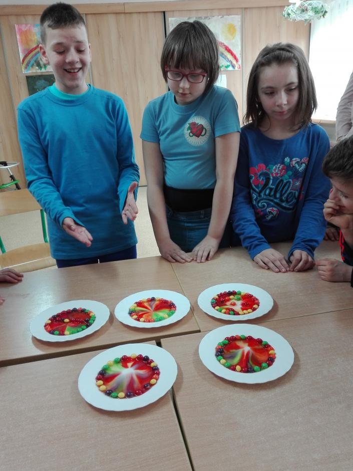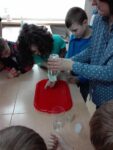 Corocznie 22 marca obchodzimy Światowy Dzień Wody. Uczniowie poznają i utrwalają wiedzę na temat jej zasobów na Ziemi, czy też jej obiegu w przyrodzie. Odkrywają, jak ważną rolę odgrywa woda w ekosystemie i dlaczego tak istotne jest dbanie o stan jej czystości. W tym roku zajęcia wzbogacono o eksperymenty z wodą, które zadziwiały i ekscytowały uczniów. Były to kolorowe wulkany; burza w szklance wody; kolorowy deszcz; tęcza; „wciągające” wykałaczki; elektryzujący balon itd.