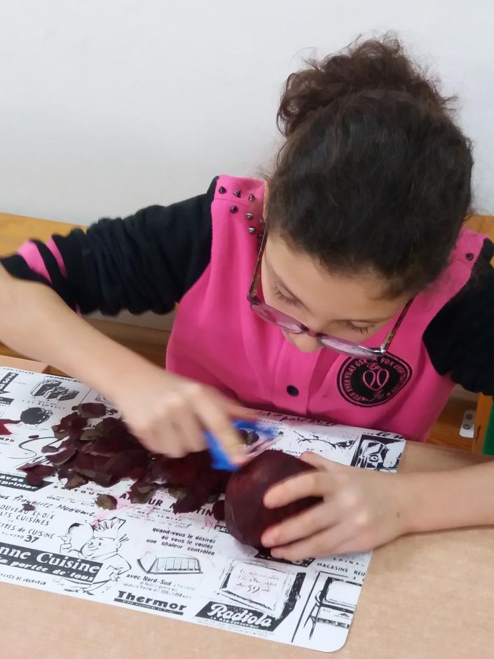 Podczas tej pracy dzieci poznawały buraka wielozmysłowo: poprzez dotyk, węch, smak. Określali jego kształt, kolor. „Dzień Buraka” obfitował także w zabawy ruchowe, wiersze, prace plastyczne z ciemnoczerwonym warzywem w roli głównej.