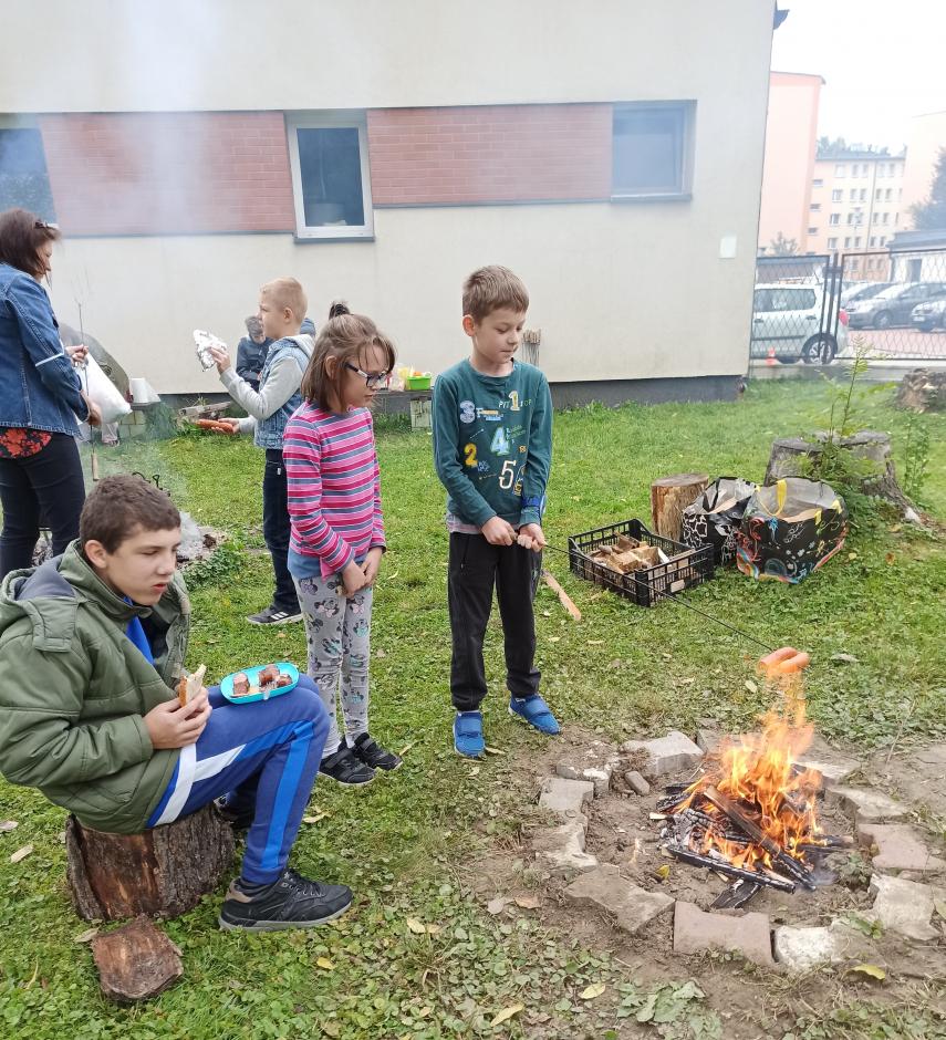 Z tej okazji, korzystając z ostatnich słonecznych dni, Samorząd Uczniowski zorganizował wspólne ognisko na terenie przyszkolnym. Po zjedzeniu grillowanych kiełbasek był czas na wspólną zabawę przy muzyce i grę w piłkę. Dodatkową atrakcją była fotobudka, gdzie każda klasa mogoła wykonać pamiątkowe zdjęcie.