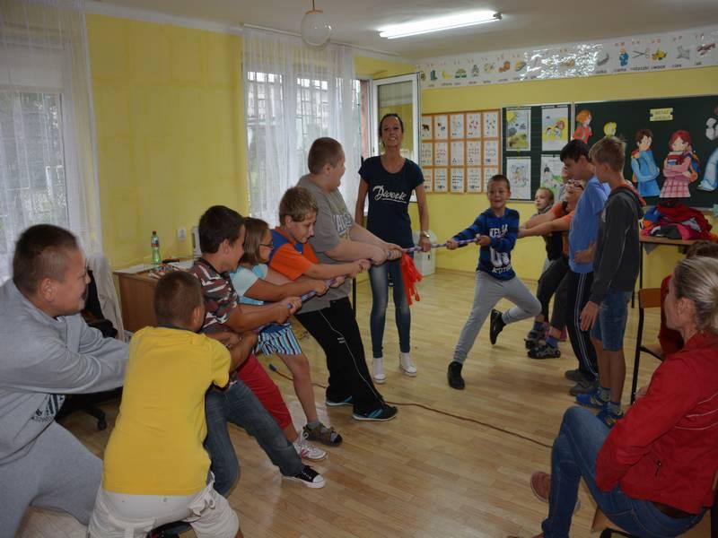 Na kolejnych stacjach (tor przeszkód, przeciąganie liny itp.) dzieci walczyły o uzyskanie jak najlepszych wyników, bawiąc się przy tym przednio. Każdy uczeń okazał się bohaterem na miarę swoich możliwości. Mimo, że zmagania do łatwych nie należały, na twarzach dzieci bezustannie widoczne były szerokie i szczere uśmiechy. A gdy zabrzmiał ostatni gwizdek wszyscy udali się na szaloną dyskotekę!