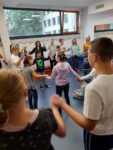 Drugiego września nowo przybyli uczniowie mieli szansę poznać grono szkolne, a stali bywalcy – przywitać się w radosnej atmosferze. Wśród wielu atrakcji znalazły się rozgrywki w koszykówkę, unihokej, zbijaka. Można było sprawdzić swoje umiejętności na torze przeszkód lub ruszając się w rytmach wesołej muzyki. Aby złapać trochę oddechu po sportowych atrakcjach, młodzież zasiadła w szkolnej auli, gdzie wyświetlane były filmy im dedykowane. Wszystkie buzie bez wyjątku były szeroko uśmiechnięte i tego życzymy – by uśmiech towarzyszył przez cały rok szkolny 😊!
