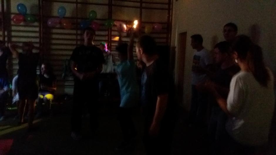 Później odbyła się dyskoteka! Było wesoło bo i powodów do radości mieliśmy tego dnia mnóstwo. Po pierwsze wybraliśmy Przewodniczącego, a po drugie chcieliśmy świętować Dzień Chłopaka. DJ Szymon, Arek, Krzysztof i Monika zaskakiwali nas doborem repertuaru, a w sklepiku Sylwia, Nina i Natalia serwowały wodę i ciastka. Uczniowie klasy I BS wiedli prym w tańcu belgijskim, a z kolei starsi instruowali młodszych w nauce wiązania krawatu.