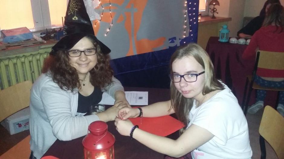 W dniu 27 listopada uroczyście obchodziliśmy Andrzejki w naszej szkole. W specjalnie przygotowanym Pokoju Wróżb zasiadło do swoich stanowisk osiem wróżek: Weronika, Edyta, Monika D., Kinga oraz Karolina, Monika S., Daria i Marta. Razem z panią Magdą wróżyły one z kart, z kostek do gry, z kwiatów, kolorów oraz cyfr. Wosk lał się przez dziurkę od klucza pod bacznym okiem pana Janusza. Byliśmy pod wrażeniem cieni, które odpowiednio podświetlone, wyłoniły się z woskowych odlewów. Bardzo nam się podobały! Po wróżbach napiliśmy się ciepłej herbaty oraz zjedliśmy upieczone przez panią Gosię ciastka o nazwie „palec wiedźmy”. Pomimo nazwy smakowały wybornie! W czasie wróżenia nieprzerwanie trwała dyskoteka, na której szaleliśmy do woli, a pan Rafał wciąż nas zaskakiwał doborem repertuaru 🙂