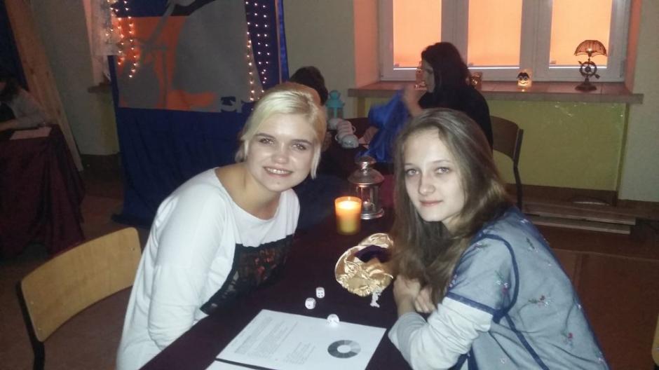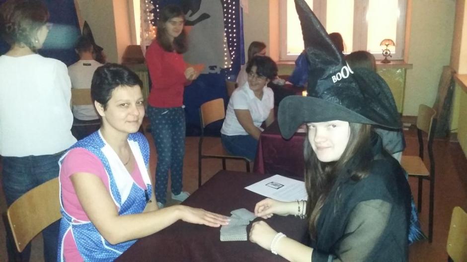 W dniu 27 listopada uroczyście obchodziliśmy Andrzejki w naszej szkole. W specjalnie przygotowanym Pokoju Wróżb zasiadło do swoich stanowisk osiem wróżek: Weronika, Edyta, Monika D., Kinga oraz Karolina, Monika S., Daria i Marta. Razem z panią Magdą wróżyły one z kart, z kostek do gry, z kwiatów, kolorów oraz cyfr. Wosk lał się przez dziurkę od klucza pod bacznym okiem pana Janusza. Byliśmy pod wrażeniem cieni, które odpowiednio podświetlone, wyłoniły się z woskowych odlewów. Bardzo nam się podobały! Po wróżbach napiliśmy się ciepłej herbaty oraz zjedliśmy upieczone przez panią Gosię ciastka o nazwie „palec wiedźmy”. Pomimo nazwy smakowały wybornie! W czasie wróżenia nieprzerwanie trwała dyskoteka, na której szaleliśmy do woli, a pan Rafał wciąż nas zaskakiwał doborem repertuaru 🙂