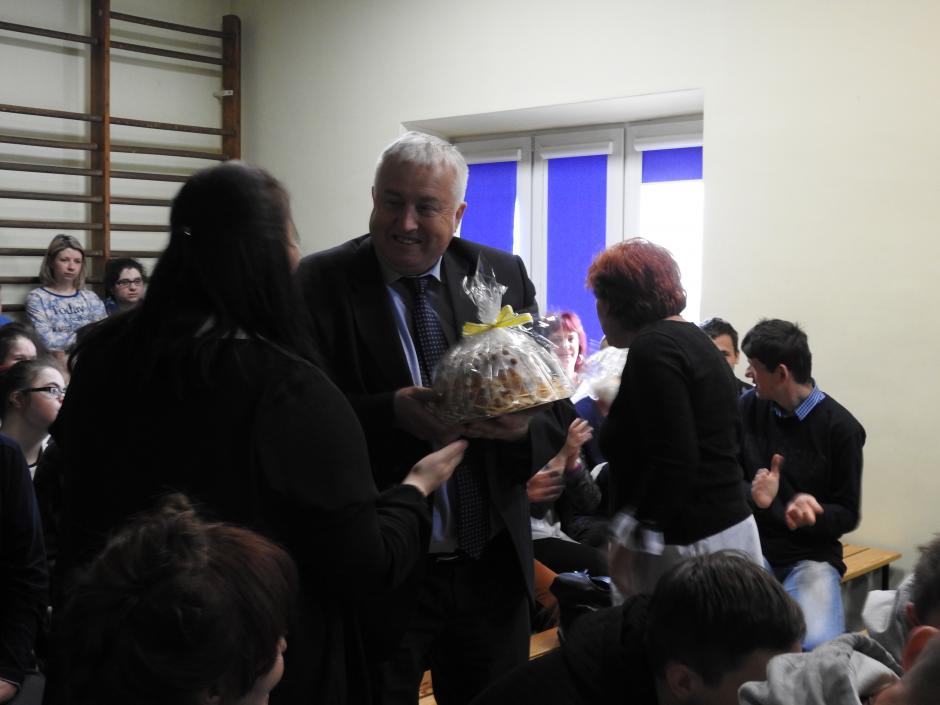W dniu 11.04.2017r. odbyło się Wielkanocne Szkolne Świętowanie. Rozpoczęliśmy utworem „Będę śpiewał Panu” w wykonaniu Weroniki Ptasińskiej. Centralnym punktem świętowania była projekcja filmu z udziałem naszych uczniów pt. „Gdzieś w Oświęcimiu jest Jezus”. Film obejrzeliśmy w dużym skupieniu. Byliśmy pod wrażeniem zarówno treści jakie chcieli przekazać nam nasi koledzy i koleżanki jak i gry aktorskiej oraz zaangażowania w to nietypowe przedsięwzięcie. Po filmie rozstrzygnięty został konkurs na najsmaczniejszy wypiek świąteczny. Po burzliwych obradach jury, poprzedzonych degustacją i długą wymianą zdań zdecydowano przyznać nagrody: I miejsce – klasa IIIc, II miejsce – klasa I b, III miejsce – klasa 1 a. Świętowanie wielkanocne zakończyliśmy wspólnym poczęstunkiem przygotowanym przez uczniów klasy IIa ZSZ pod opieką p. M. Kaszuby-Wałęgi.