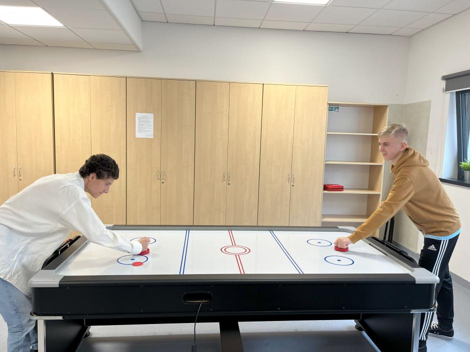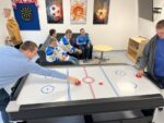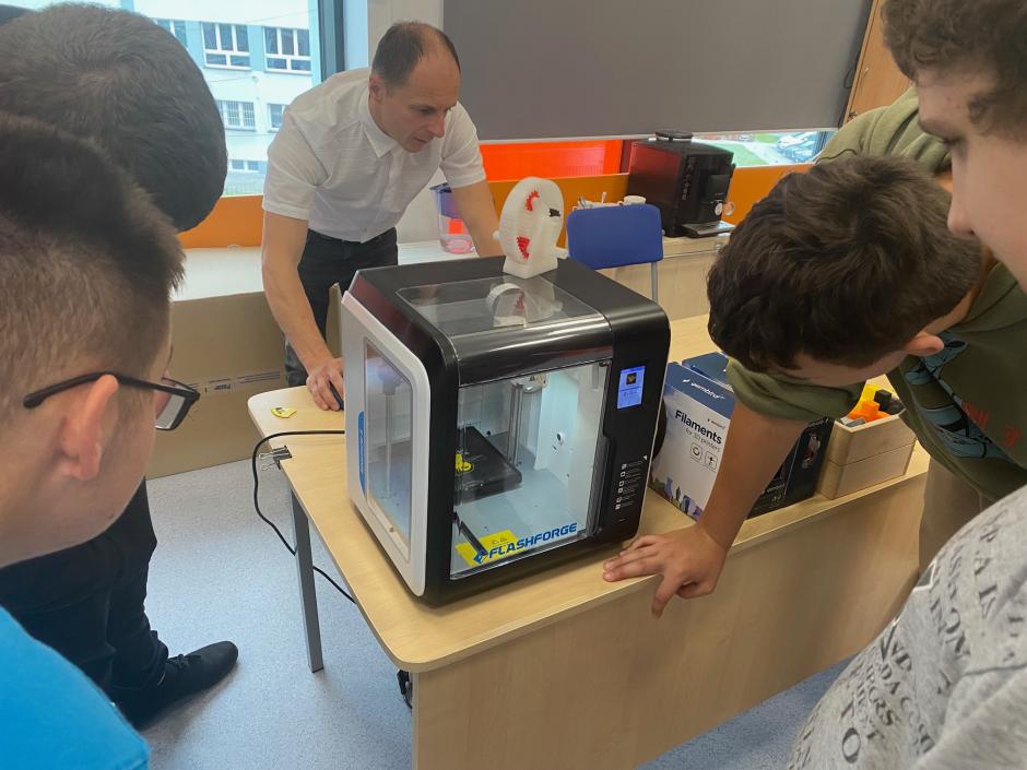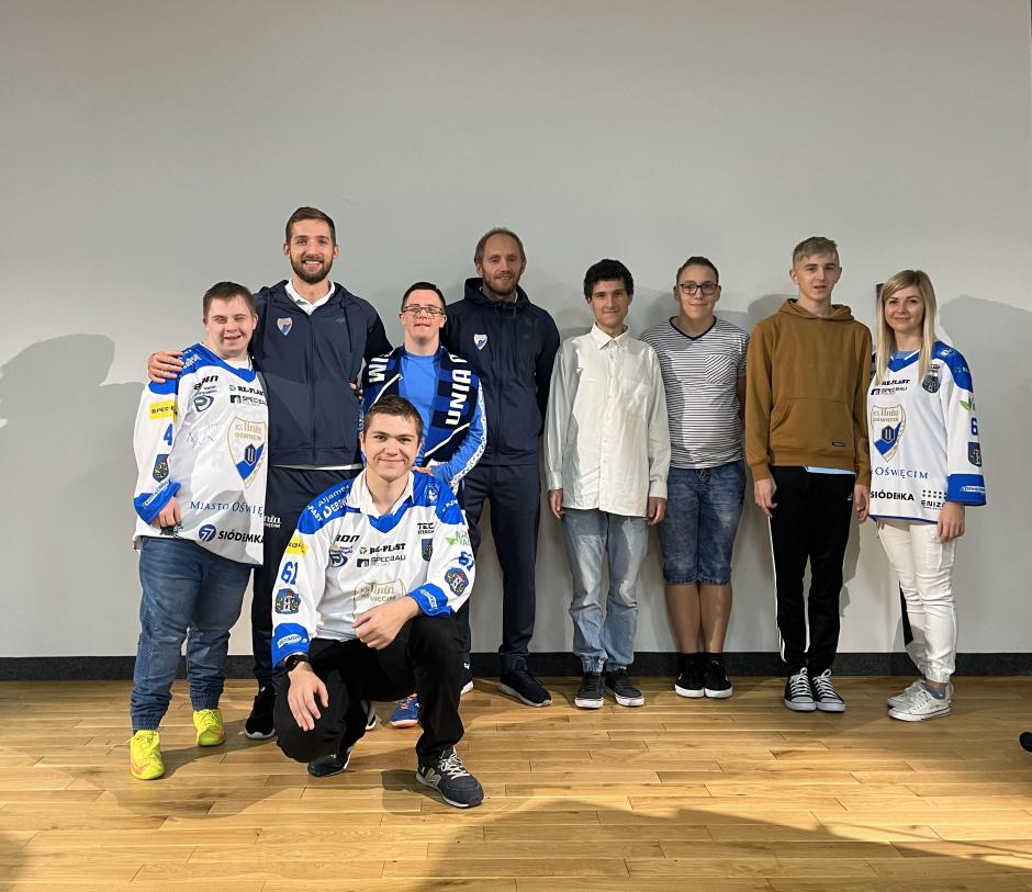 W środę 02.10.2024r. w naszej szkole obchodziliśmy Hokejowy Dzień Chłopaka. Z tej okazji naszą szkołę odwiedzili hokeiści Unii Oświęcim- Peter Bezuska i Sebastian Kowalówka. W trakcie tego spotkanie nasi goście opowiedzieli nam o tym jak rozpoczęli swoją przygodę z hokejem, jak wyglądają ich treningi oraz w jaki sposób dbają o formę. Oprócz tego uczniowie poznali zasady gry w hokeja oraz mieli możliwość przymierzenia stroju hokejowego i zrobienia sobie zdjęcia z hokeistami. Po spotkaniu na uczniów czekało jeszcze wiele atrakcji. W sali gier uczniowie mogli sprawdzić swoje umiejętności w grze Cymbergaj oraz NHL na PlayStation, a kondycję fizyczną w meczu unihokeja. Oprócz tego każdy z uczniów miał możliwość zobaczenia jak działa drukarka 3D, w której powstawało logo Unii Oświęcim. Na pamiątkę tego wydarzenia uczniowie otrzymali breloki z logo Unii Oświęcim oraz plakaty z podpisem wszystkich zawodników.