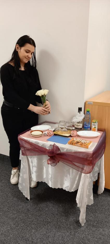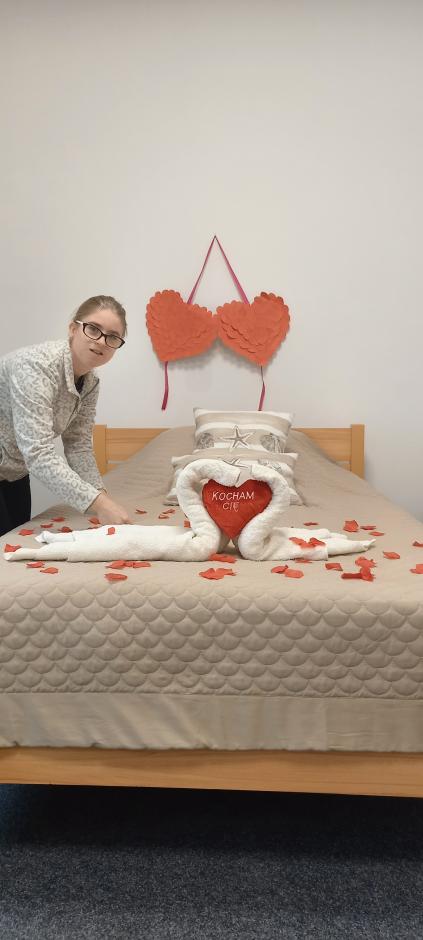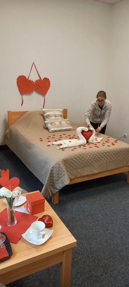 Uczniowie z klasy hotelarskiej w nowej pracowni mają doskonałe warunki do nauki i praktyki. W nowej szkole przygotowują się do wykonywania czynności pomocniczych w obiektach hotelowych. Na praktycznej nauce zawodu uczą się umiejętności takich jak: przygotowanie pokoju dla gościa hotelowego (tym razem z okazji Walentynek) przygotowanie serwisu wieczornego dla gościa VIP, obsługi kelnerskiej gościa, sporządzania podstawowych posiłków, poczęstunku, pielęgnacji roślin. Zajęcia są urozmaicone, uczniowie bardzo chętnie wykonują zadania, rozwijają swoje zainteresowania, potrzebne w przyszłości do wykonywania zawodu.