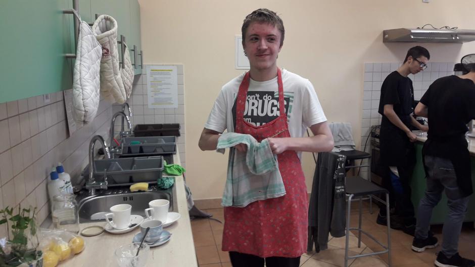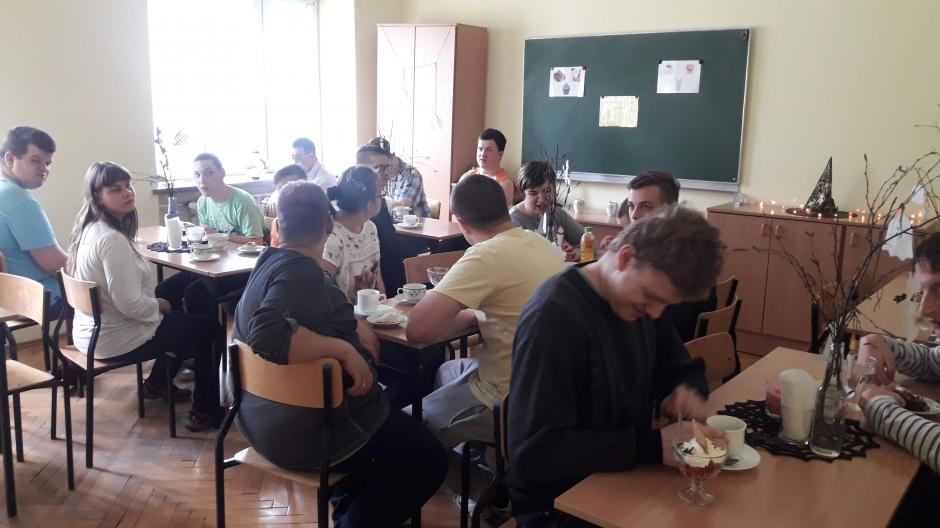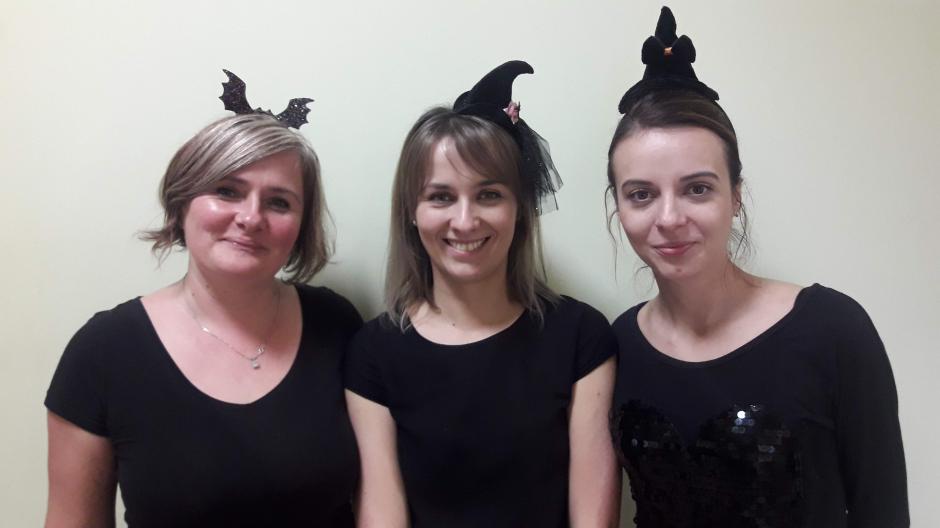 Na II piętrze można było odpocząć, zasiadając w kawiarence „Babeczka” i zamówić kawę, herbatę lub wodę z cytryną i miętą oraz spróbować „andrzejkowych” przysmaków: babeczki z czekoladową pajęczyną, ciasta z okiem czarownicy i robakiem czy deseru z galaretki i bitej śmietany. Nad wszystkim czuwały opiekunki szkolnej kawiarenki: Pani Bożena, Pani Marzena i Pani Dorota. Niezastąpieni jak zawsze okazali się nasi wolontariusze: Patrycja, Julka, Marta, Krzysiek, Kasia, Paulina, Martyna, Ula, Łukasz, Maciek, Janusz i dwóch Adrianów, którzy przydzieleni byli do różnych czynności w tym wspaniałym przedsięwzięciu.