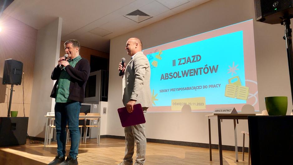 II Zjazd Absolwentów odbył się w dniu 23.11.2023r. Dobrze było znowu zobaczyć znajome twarze, porozmawiać i powspominać. Spotkanie rozpoczęliśmy od obejrzenia zdjęć z poprzednich lat, na których nasi absolwenci z pewnością się odnaleźli. Po krótkich wspomnieniach odbył się konkurs wiedzy o szkole gdzie rywalizowali ze sobą uczniowie i goście – absolwenci. Niektóre pytania nie należały wcale do najłatwiejszych 😉 Niewielką różnicą punktów wygrali uczniowie. Poznaliśmy również wyniki konkursu plastycznego „Moje wspomnienia ze szkoły”. Trzeba przyznać, że wybór nie był trudny ponieważ prace były rzeczywiście fantastyczne. Na koniec wykonaliśmy zbiorowe pamiątkowe zdjęcie. Po tej części ruszyliśmy wszyscy na dyskotekę oraz poczęstunek.