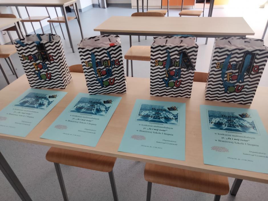 W dniu 10.06.2021 jury w składzie Pani Dyrektor, Pani Julita, Pani Agnieszka i Pani Magda rozstrzygnęło konkurs multimedialny pt. „Ja i mój świat” w Branżowej Szkole I Stopnia. Nadesłane przez uczniów filmiki zostały ocenione pod względem zgodności z tematem, poprawności komunikatu i montażu całości. Zwycięzcą konkursu został Patryk Tomala z kl. IIc, który przedstawił swój świat oparty na aktywności fizycznej z przesłaniem dla innych w postaci hasła końcowego: „Nie marnuj czasu w domu. Życie ma sens. Żyj jego pełnią”.