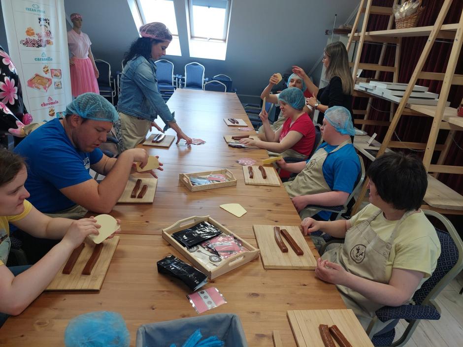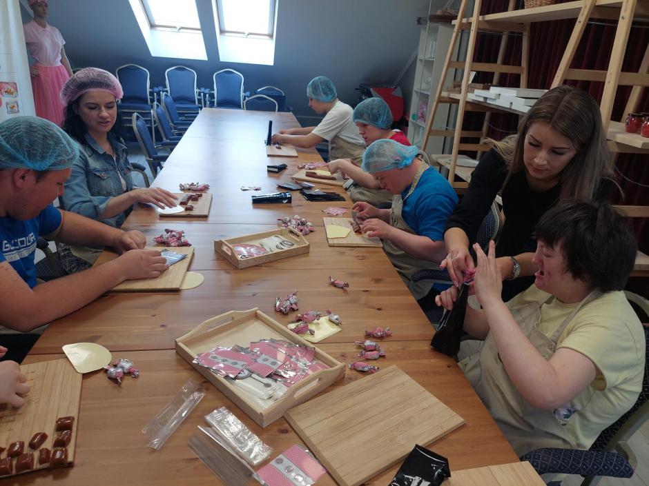 20 maja uczniowie klas drugich Szkoły Przysposabiającej do Pracy brali udział w warsztatach cukierniczych prowadzonych przez firmę Lolly Polly w Zatorze. Dowiedzieli się, jak powstaje „Krówka zatorska” oraz zobaczyli proces jej wytwarzania. Mieli okazję zobaczyć linię produkcyjną krówek, poszczególne etapy produkcji oraz spróbowania świeżych, codziennie wytwarzanych słodyczy. Ostatnim etapem warsztatów, była możliwość samodzielnego pokrojenia i zapakowania cukierków, według własnego pomysłu, które były słodką pamiątką z zajęć. Nie obyło się też bez kosztowania wspaniałych lodów Lolly Polly.