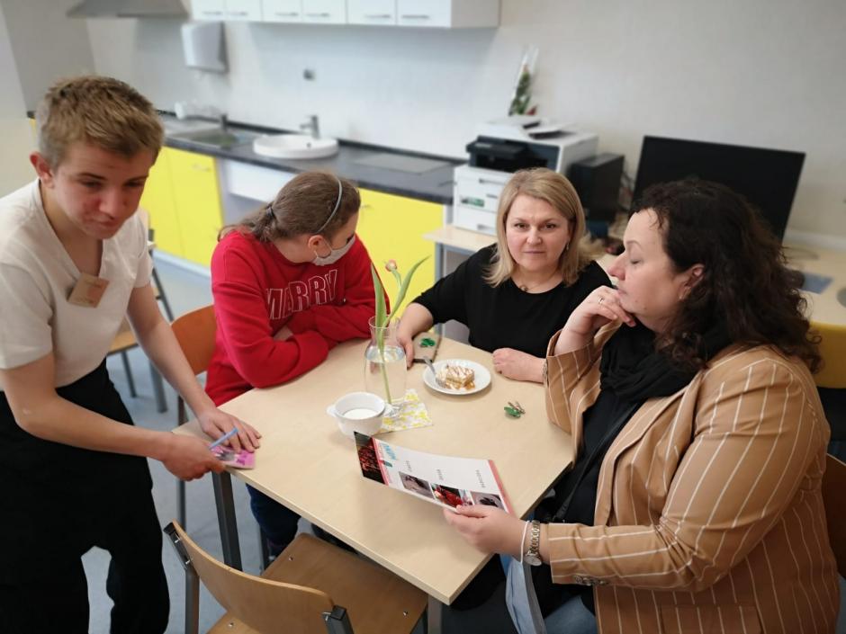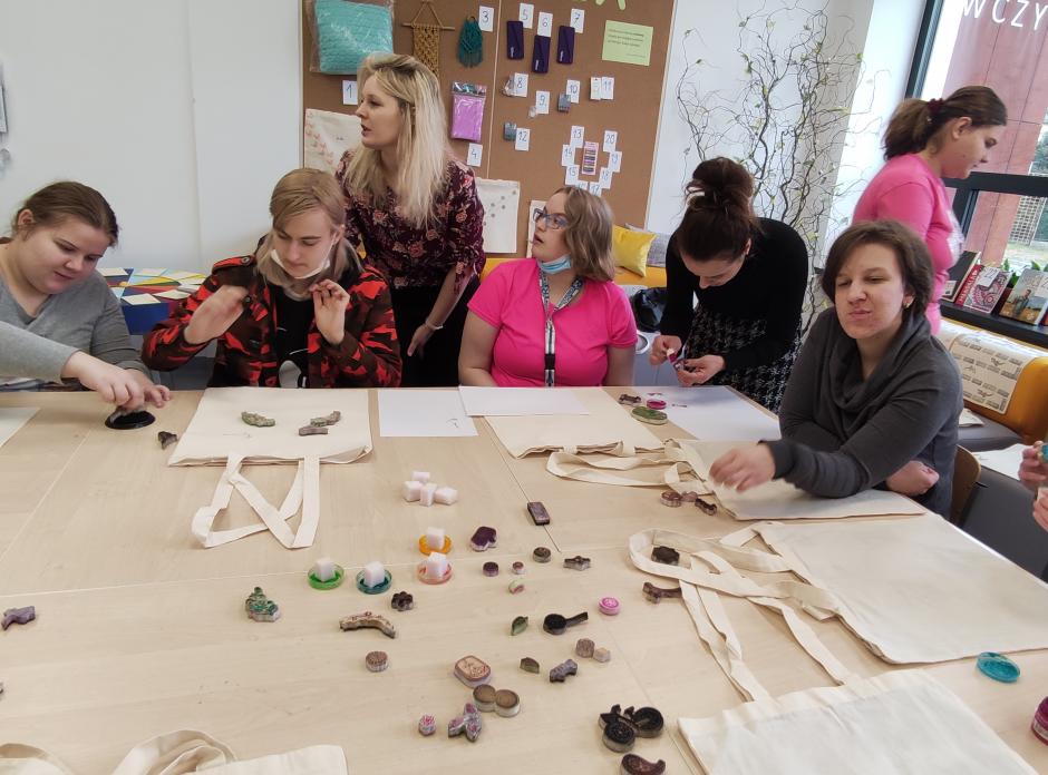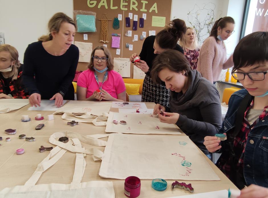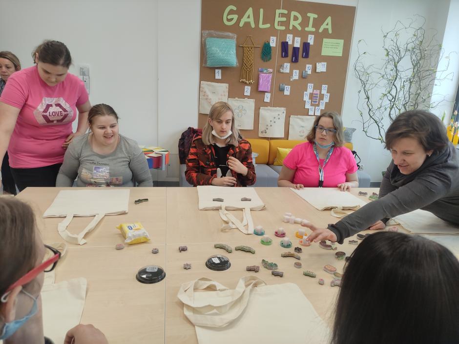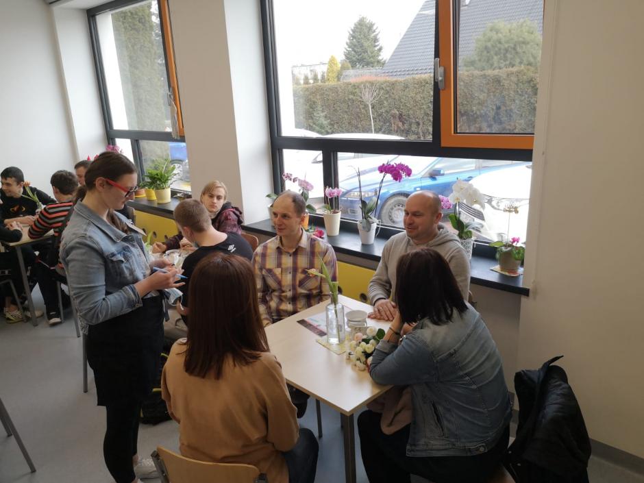 8 marca obchodziliśmy w naszej szkole Dzień Kobiet. Z tej okazji dziewczęta wzięły udział w specjalnie przygotowanych dla nich atrakcjach. Pierwszą z nich były warsztaty rękodzielnicze. Każda z uczennic przy użyciu odpowiednich farb, tuszy, stempli wykonała własną, niepowtarzalną torbę ekologiczną. Zajęcia te wyzwoliły w dziewczynach wiele kreatywności i radości. Po twórczej pracy przyszedł czas na słodki poczęstunek i pogawędki, a także chwilę relaksu przy manicure. Następnie uczennice mogły poczuć się jak w prawdziwym teleturnieju! Kręciły „Kołem fortuny”, odpowiadały na pytania i wygrywały nagrody. Tego dnia dziewczęta z BSISt uczestniczyły także w zajęciach z panią pielęgniarką i położną w ramach programu „Wybierz życie-pierwszy krok”. Serdecznie podziękowania kierujemy w stronę nauczycieli, którzy zorganizowali szkolne obchody Dnia Kobiet: pani Annie Lichańskiej, Izabeli Wyrwie, Annie Kluwak oraz Marzenie Frączek-Grzbinodze. To jednak nie wszystko! W ramach szkolnego wolontariatu Pożyteczni w dniu 8 marca odbyła się już kolejna odsłona szkolnej kawiarenki „Babeczka”.  W menu do wyboru było: szarlotka z lodami, deser w postaci galaretki a także tytułowa babeczka, do picia kawa z ekspresu, herbata oraz woda z cytryną. Goście kawiarni składali zamówienia, a kelnerzy czyli uczniowie Szkoły Przysposabiającej do Pracy oraz Szkoły Zawodowej pod bacznym okiem kierownik sali Małgorzaty Mazur realizowali zamówienia. Na kawiarnianym zapleczu, czyli sercu kawiarenki  uczniowie Szkoły Zawodowej oraz Przysposabiającej do Pracy pod okiem pani Doroty Gałuszki Mastykarz oraz pani Bożeny Sworzeń przygotowywali, dekorowali oraz wydawali zamówienia kelnerom. To był bardzo pracowity dzień dla pracowników szkolnej kawiarni, który po raz kolejny sprawił uczniom jak i nauczycielom wiele radości. Dziękujemy wszystkim uczniom, wolontariuszom oraz nauczycielom pani Ani, Marzenie i Agnieszce zaangażowanym w przygotowanie oraz realizację Szkolnej Kawiarenki Babeczka.