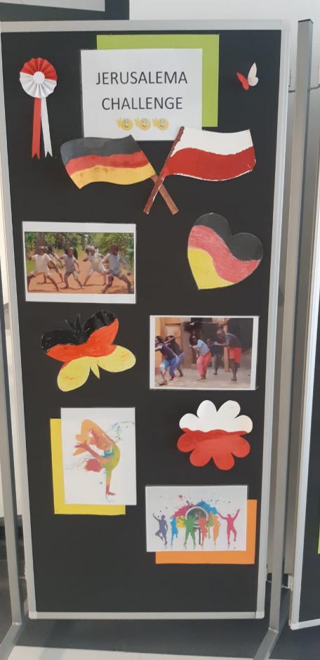 Na pewno wszyscy słyszeli o Jerusalemie. Jest to układ taneczny do afrykańskiej piosenki, który już od dłuższego czasu podbija Internet. Tańczy się go wszędzie – na ulicach, w parkach, na lotniskach, w szkołach, a nawet w szpitalach. Tańczący ludzie, choć zachowują dystans między sobą, dają upust swoim emocjom i radosnej zabawie w czasie, kiedy pandemia wiele w nas ogranicza. Afrykański tekst jest o jedności, daje nadzieję i przybliża ludzi. Ochotą do tańca „zarazili” nas nasi niemieccy koledzy i koleżanki ze szkoły w Mőlln. Przysłali nam filmik pokazujący ich radosny taniec. Przyjęliśmy ich wyzwanie aby również się go nauczyć i już niedługo podzielimy się z nimi naszym filmikiem.