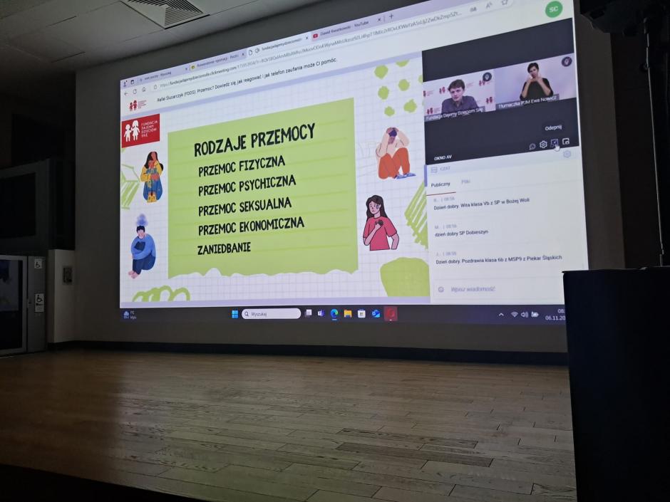 Dnia 6.11.2024r. klasy pdp wzięły udział w webinarze prowadzonym przez Rafała Ślusarczyka, a zatytułowanym: „Przemoc? Dowiedz się jak reagować i jak telefon zaufania może ci pomóc”. Webinar odbył się w ramach cyklu spotkań połączonych z kampanią „Dzieciństwo bez przemocy”, w której nasza szkoła bierze czynnie udział.