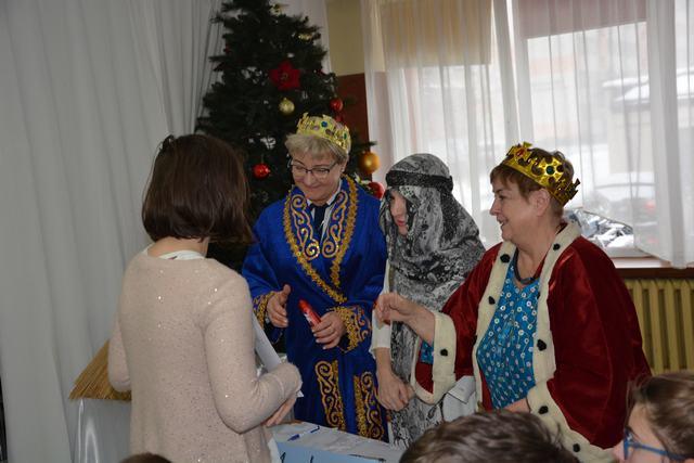 Zmagania muzyczne kolędników oceniali Trzej Mędrcy ze Wschodu, w roli których wystąpiły nasze byłe nauczycielki pani Elżbieta Hebda, Małgorzata Zakutyńska i Barbara Frączek. Każdy z uczestników otrzymał pamiątkowy dyplom i czekoladowego aniołka podarowanego przez firmę „Cosmo”. Z pośród blisko 40 wykonań Mędrcy przyznali nagrody i wyróżnienia w kategoriach: soliści, duety i tria, oraz klasy i zespoły. Tradycyjnie na koniec konkursu kolęd wystąpiło grono pedagogiczne naszej szkoły.