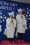 Wielką niespodzianką dla wszystkich były debiuty nowych uczniów w szkole, zwłaszcza tych najmłodszych. Niektórzy z uczestników zaprezentowali się w pięknych strojach aniołów, pasterzy. Każdy z kolędników dostał pamiątkowy dyplom i czekoladowego Mikołaja, zaś zwycięscy konkursu nagrody rzeczowe. Tradycyjnie koncert kolęd zakończył występ naszych nauczycieli.