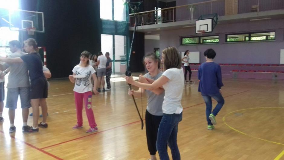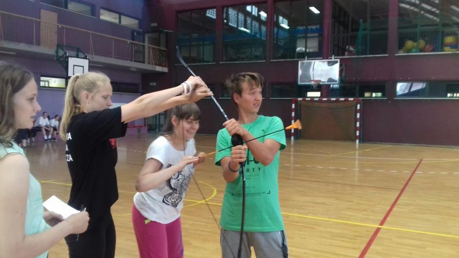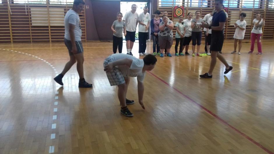 Już tradycją trwającą trzeci rok, stało się, że młodzież SPdP została zaproszona na Turniej Sportowy, przez zaprzyjaźnione Gimnazjum w Rajsku. Jak zwykle zostaliśmy mile i pysznie ugoszczeni, a młodzież gimnazjalna stanęła na wysokości zadania i przygotowała nam bardzo atrakcyjny Turniej, składający się z wielu zadań i gier. Każdy z nas miał możliwość zmagania się z wieloma konkurencjami takimi jak: rzut do kosza, podciąganie, skoki na skrzynie, skakanka, golf, a nawet strzały z łuku sportowego. Emocji sportowych był ogrom. Najwięcej zabawy było jednak podczas wspólnej gry nauczycieli z młodzieżą w tzw. „Zbijanego”. Na koniec oczywiście spontaniczna dyskoteka w rytmach Disco Polo oraz tak bardzo wyczekiwane przez naszych wychowanków wyniki indywidualne Turnieju i nagrody. I tak: