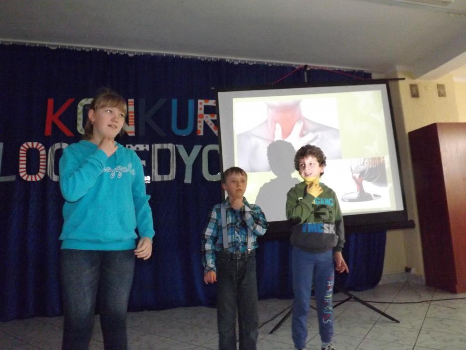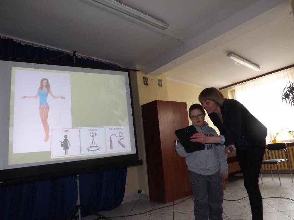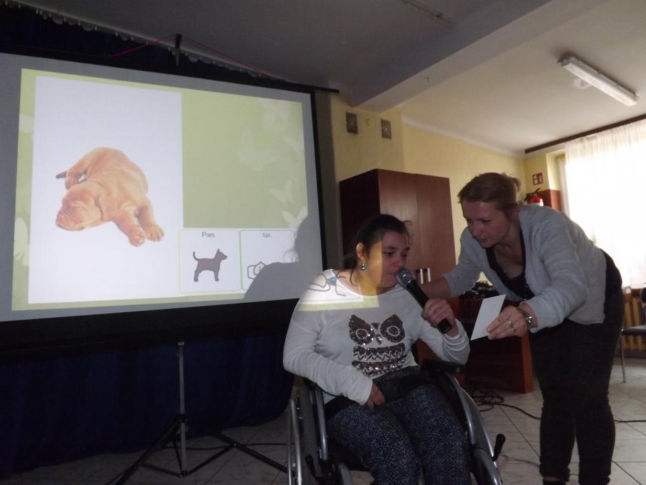 Recytacja trudnych artykulacyjnie tekstów przeplatana była zagadkami słuchowymi i ćwiczeniami motoryki artykulacyjnej. Na zakończenie publiczność podzielona na grupy podjęła się wyzwania – uczniowie wykorzystali komunikację wspomagającą i alternatywną (gesty Makaton, symbole Mówik oraz oprogramowanie Mówik z tabletem), umiejętność czytania metodą symultaniczno – sekwencyjną oraz umiejętność czytania globalnego.