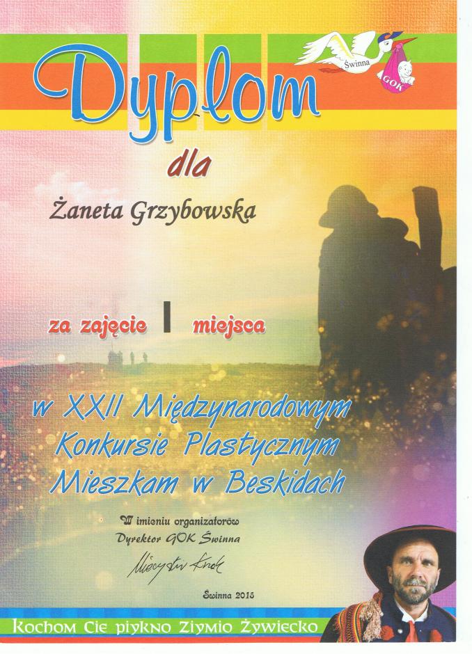 Kategoria wyklejanka 15-18 lat     I miejsce Żaneta Grzybowska