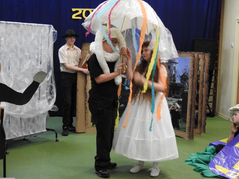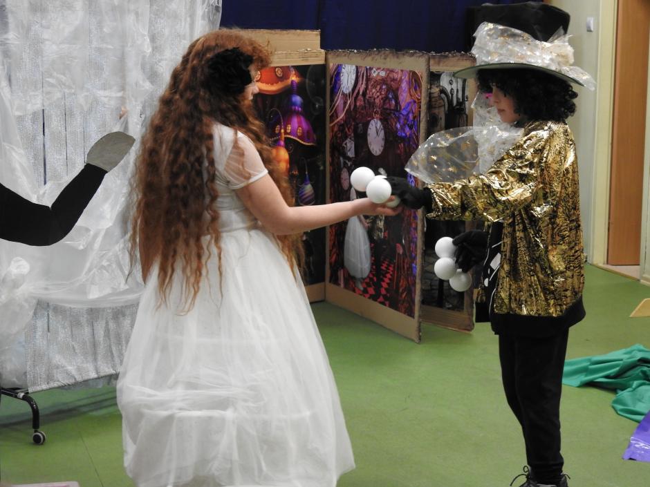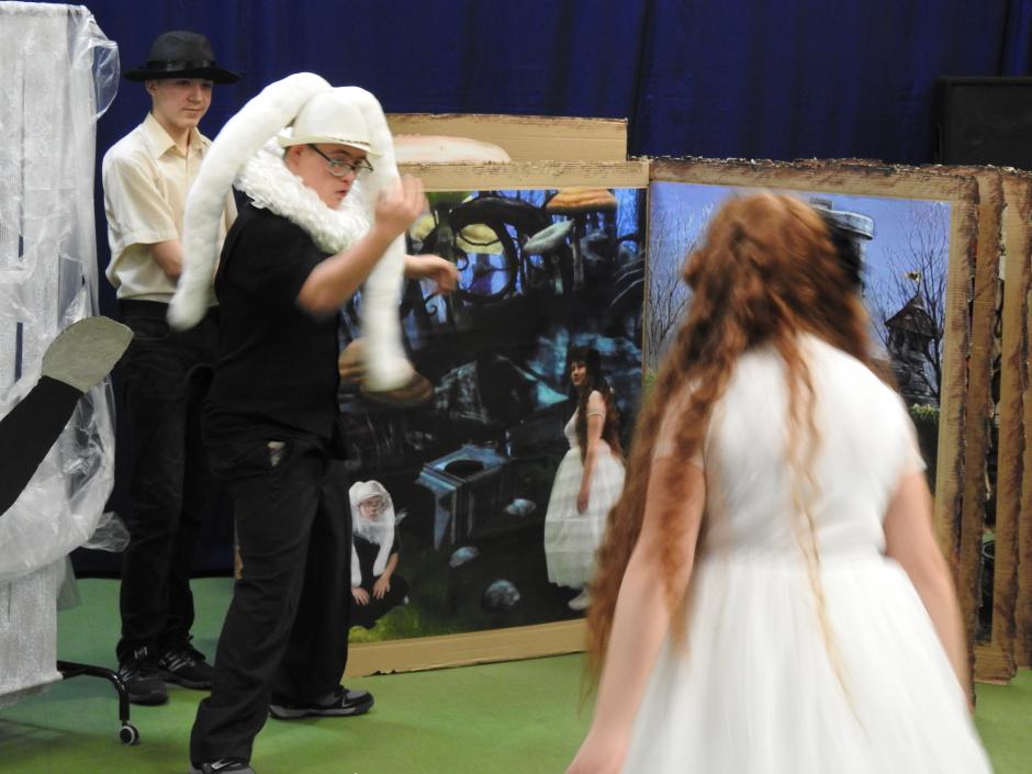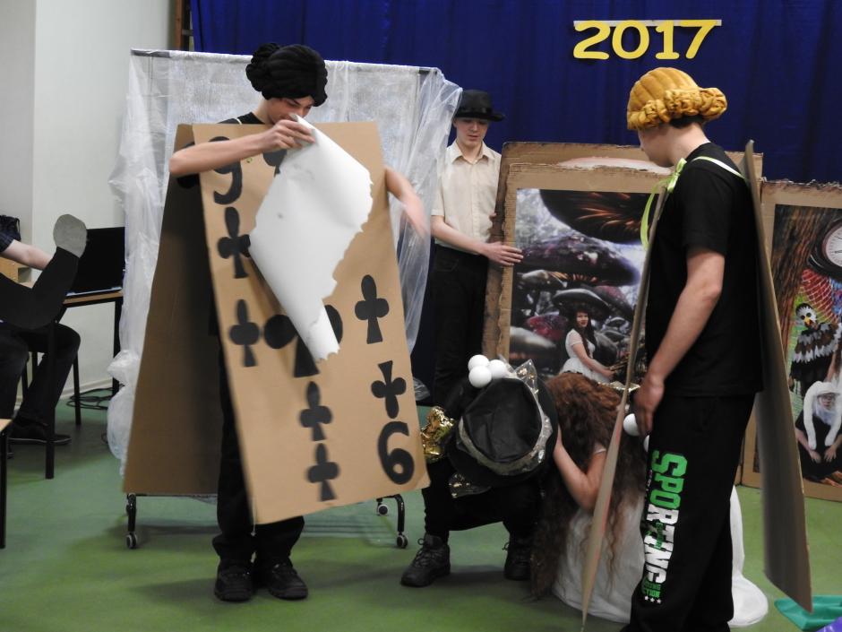 Wysoki poziom naszych artystycznych zmagań potwierdziła grupa teatralna w przedstawieniu pt.: „Alicja w krainie czarów”. Oczarowane jury, z podziwem doceniło grę aktorską, zaangażowanie uczniów oraz scenografię. Kolejne mocne punkty: Sławomir Kała i Adrian Guzorczuk – dwóch wykonawców zaczarowanej sztuki, którzy zdobyli tytuł laureatów. Pozostałych aktorów wyróżniono.