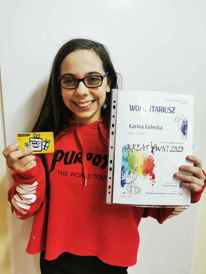 Organizatorem przeglądu był Młodzieżowy Dom Kultury w Oświęcimiu. Projekt sfinansował Powiat Oświęcimski. Uczennica naszej szkoły – Karina otrzymała wyróżnienie! W Jej ręce trafił pamiątkowy dyplom oraz bon pieniężny.