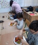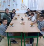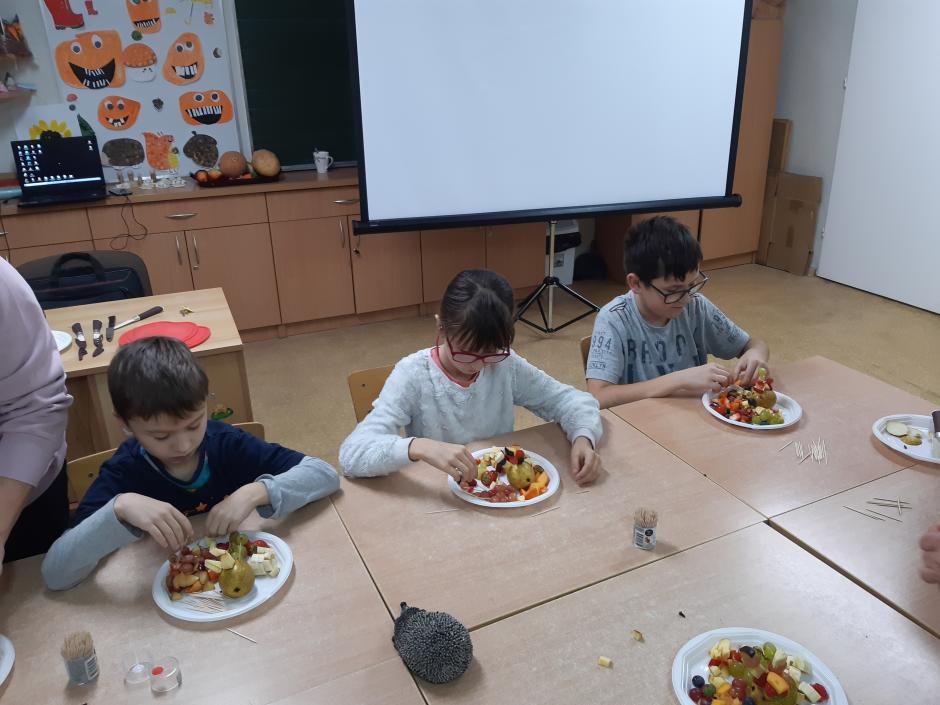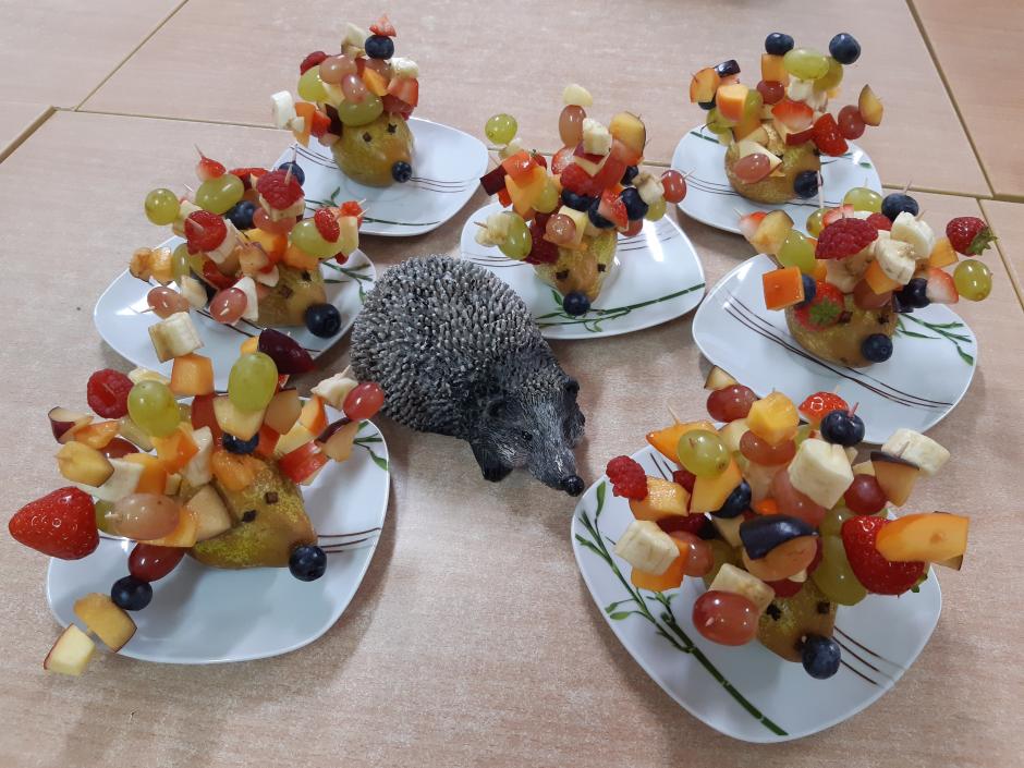 W drugiej części zajęć wykonali zdrowe i smaczne owocowe jeże.