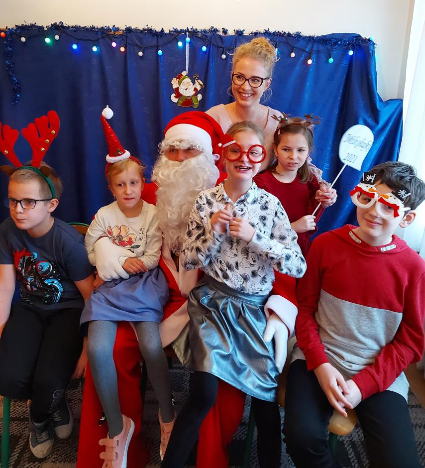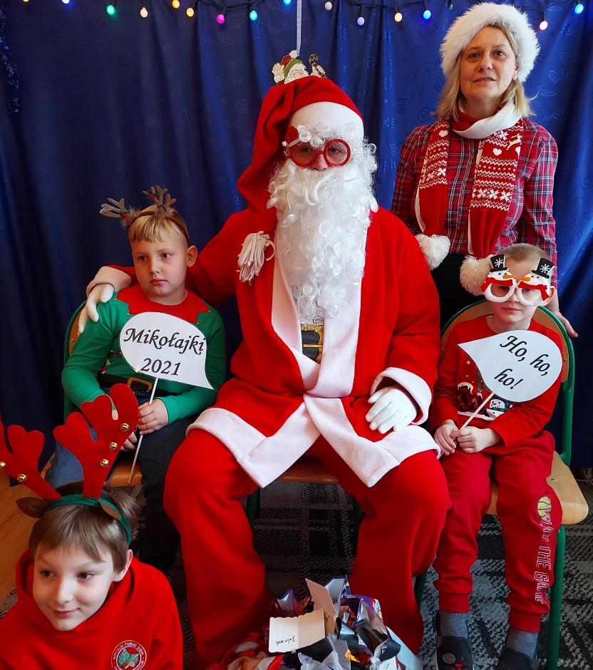 Jak na prawdziwego Mikołaja przystało przywiózł ze sobą dużo prezentów. Wszyscy uczniowie otrzymali upominki od Św. Mikołaja oraz wykonali pamiątkowe zdjęcie. Dla tak wspaniałego gościa, w podziękowaniu za wizytę, uczniowie klasy 4c przygotowali słodki poczęstunek.