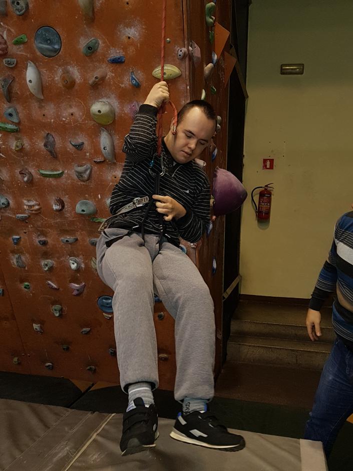 W tym roku Mikołajki w naszej szkole obchodziliśmy na hali sportowej w Brzeszczach. Uczniowie Branżowej Szkoły I Stopnia i Szkoły Przysposabiającej do Pracy świętowali Mikołajki na sportowo. Ruch to zdrowie więc do aktywności nie trzeba było nikogo długo namawiać. Uczniowie uczestniczyli w grach zespołowych, konkurencjach indywidualnych, a dla odważnych przygotowane były zajęcia na ściance wspinaczkowej. Uczniowie próbowali przełamywać swoje ograniczenia i słabości. Uśmiech na twarzy towarzyszył uczestnikom już od momentu zakładania uprzęży, aż do momentu zjazdu na linie. O gry zespołowe i zabawy indywidualne zadbali pani Julita i panem Rafał. Na koniec nie mogło zabraknąć oczywiście słodkości.