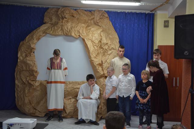 23 marca z okazji zbliżających się Świąt Wielkiej Nocy, uczniowie naszej szkoły przygotowali wzruszające misterium, przedstawiające życie i Zmartwychwstanie Jezusa Chrystusa. Teksty, wspaniała muzyka i pieśni oraz scenografia, wprowadziły w nastrój nadchodzącego Wielkiego Tygodnia.