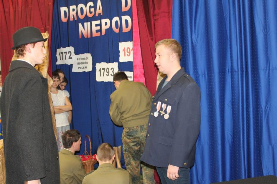Święto Odzyskania Niepodległości obchodzone jest również przez młodzież naszej szkoły. W sposób niezwykle przejmujący przybliżony został bardzo ważny fragment historii naszego kraju. Wspólnie mogliśmy przez chwilę poczuć atmosferę tamtych czasów – lęk, strach, przerażenie, a później radość z odzyskania niepodległości. Najważniejsze daty tamtego okresu oraz tło historyczne przybliżył nam pan Edward Szydło.