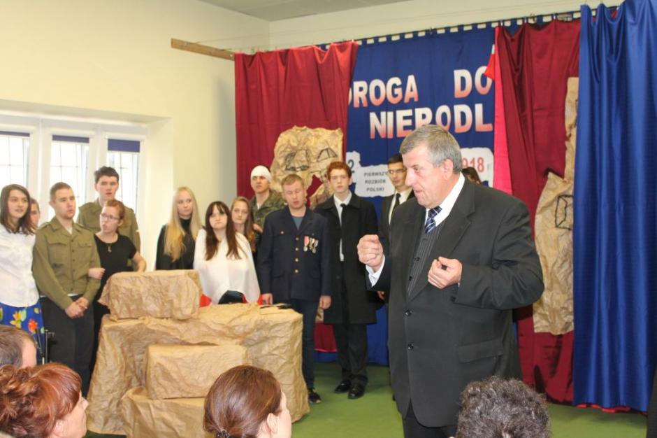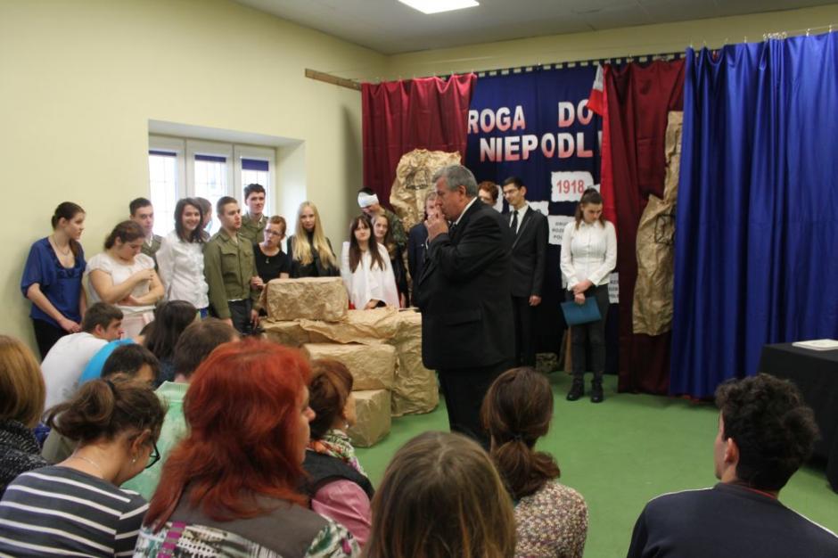 Święto Odzyskania Niepodległości obchodzone jest również przez młodzież naszej szkoły. W sposób niezwykle przejmujący przybliżony został bardzo ważny fragment historii naszego kraju. Wspólnie mogliśmy przez chwilę poczuć atmosferę tamtych czasów – lęk, strach, przerażenie, a później radość z odzyskania niepodległości. Najważniejsze daty tamtego okresu oraz tło historyczne przybliżył nam pan Edward Szydło.