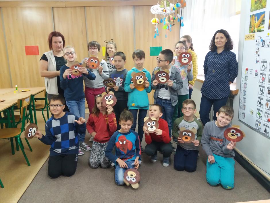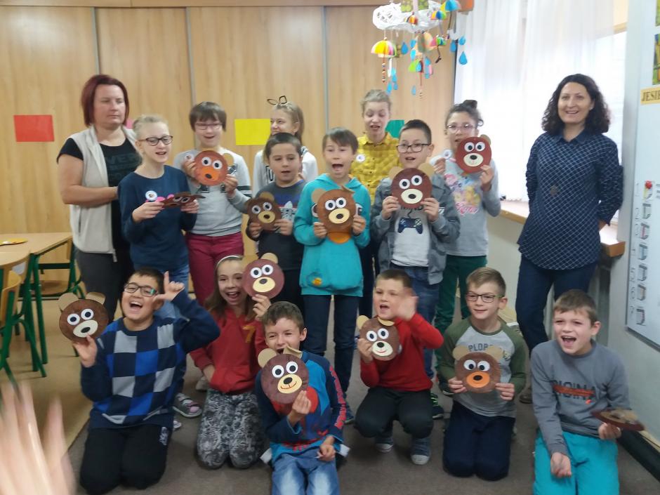 W tym roku w naszej szkole dzień ten uświetniły pracownice Biblioteki Pedagogicznej w Oświęcimiu. Przygotowały one dla uczniów prezentację o prawdziwych niedźwiadkach z całego świata, a podczas wspólnej rozmowy z uczniami przypomniały historię powstania tej niezwykłej maskotki. Przedstawiły także pluszowego misia jako bohatera bajek i filmów. Następnie dzieci z przygotowanych elementów wykonały swojego misia. Zabawa ruchowa „Stary niedźwiedź…” dostarczyła i małym i dużym wiele radości. Na koniec uczniowie śpiewali znane i lubiane piosenki o misiach oraz posłuchali opowieści o Kubusiu Puchatku.